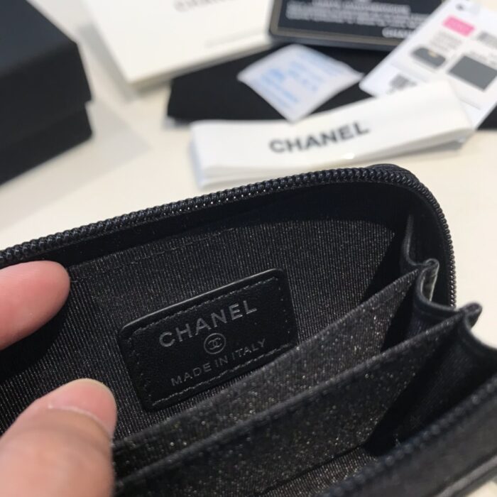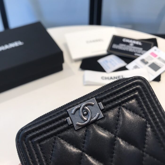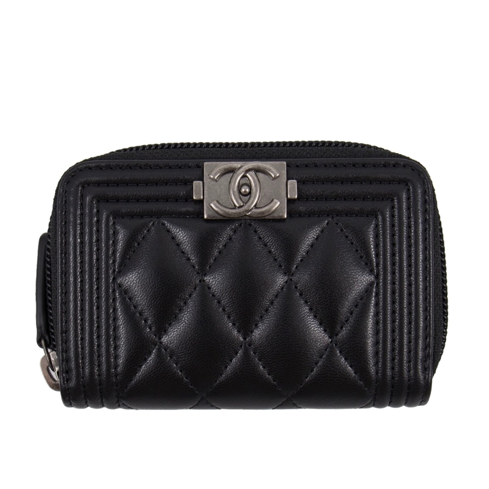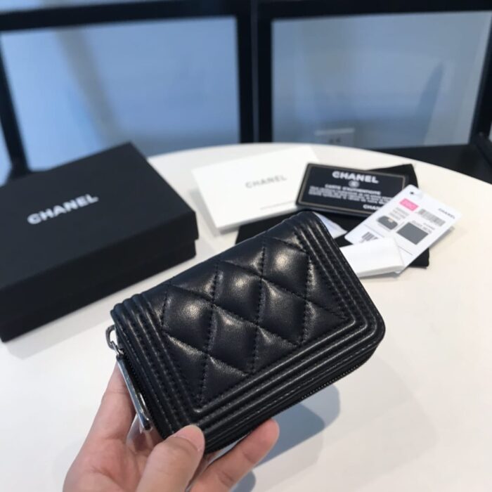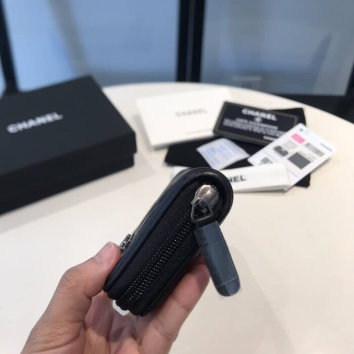 CHANEL BOY ZIPPED COIN BLACK SILVER PURSE A80602