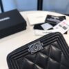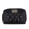 Chanel Boy Zipped Coin Black Silver Purse A80602