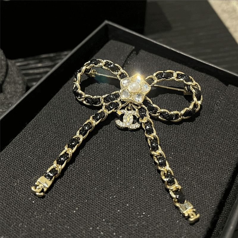 Chanel Brooch / Metal Pearls & Strass / Gold tone hardware / Elegant style