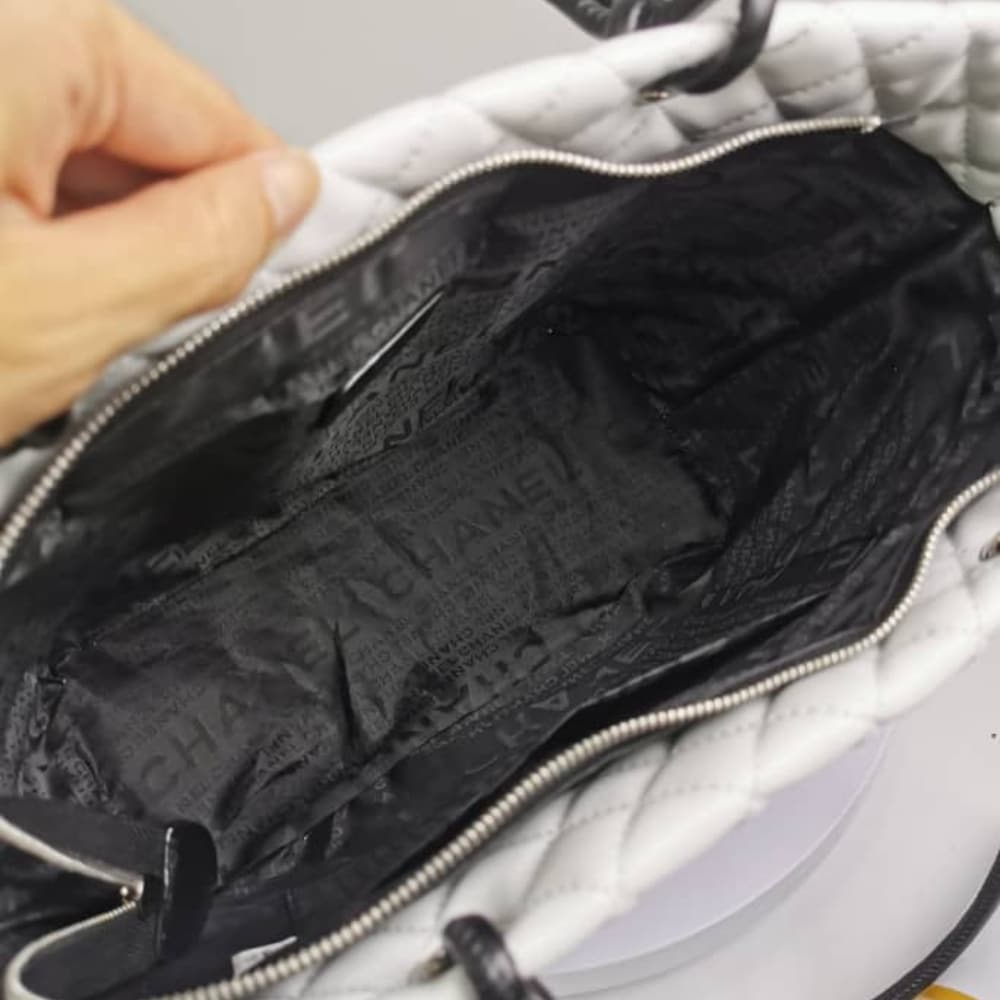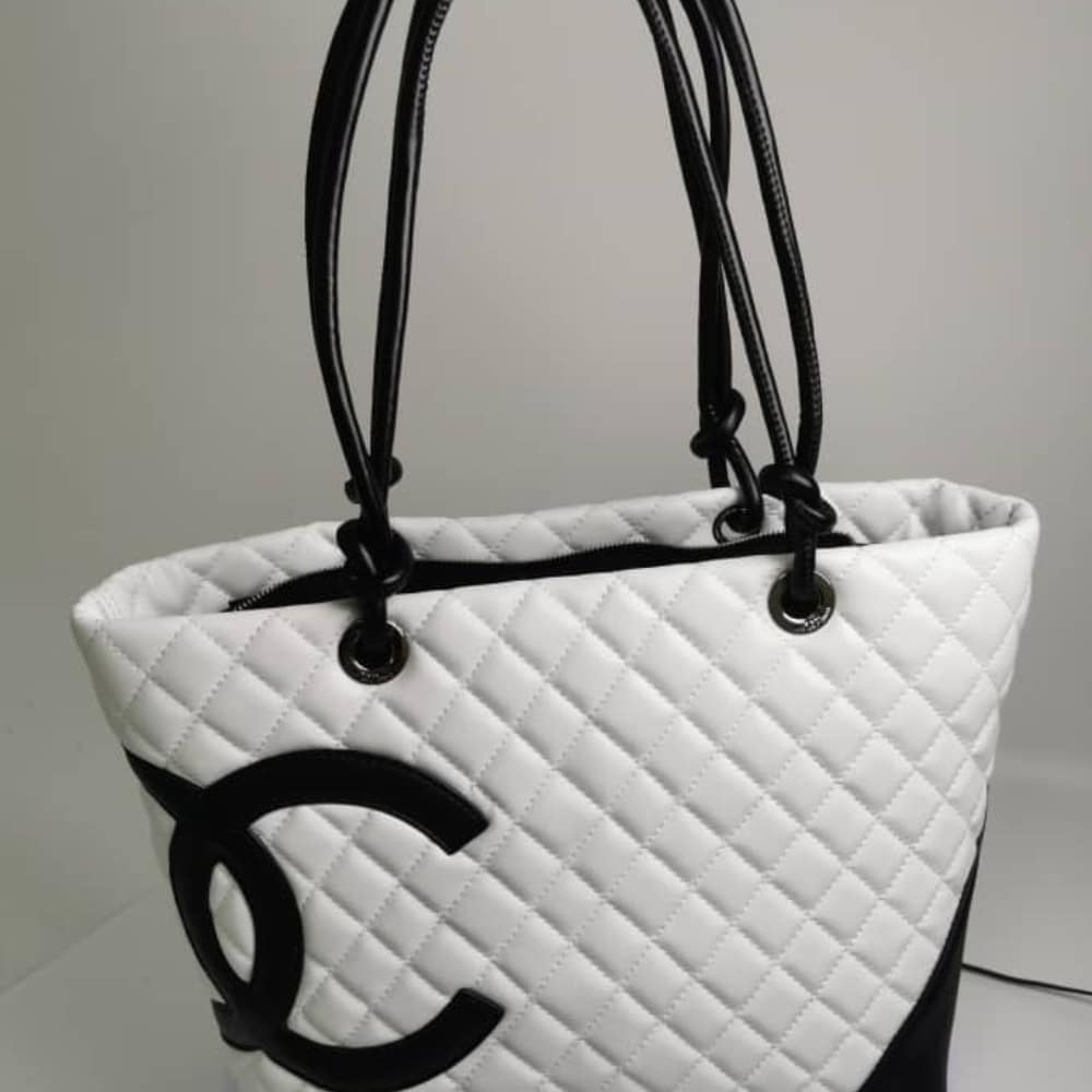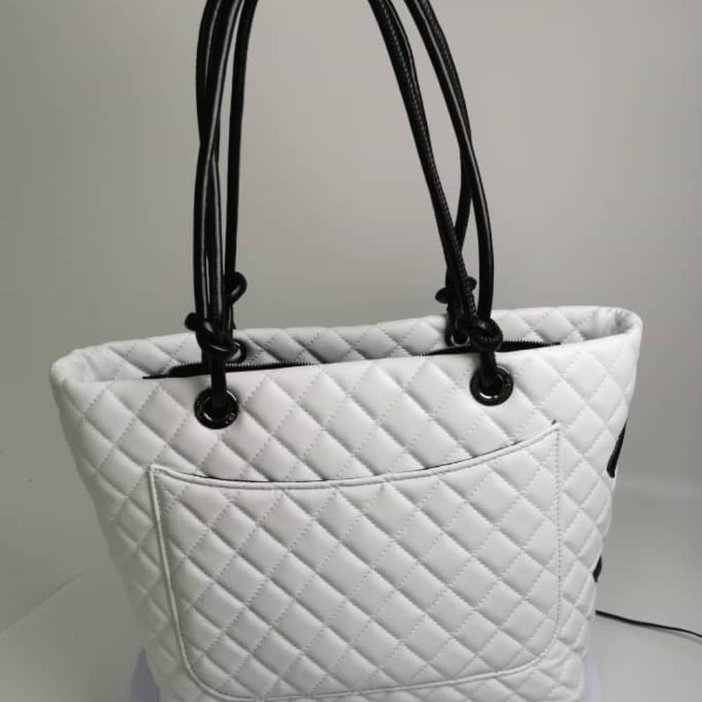 Chanel Cambon Line Large Tote Bag In White And Black / 41 cm / 16.1 inches