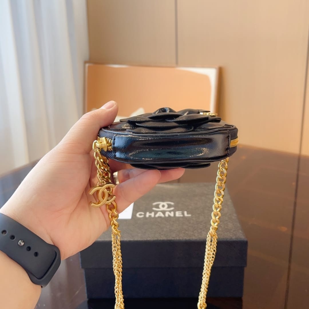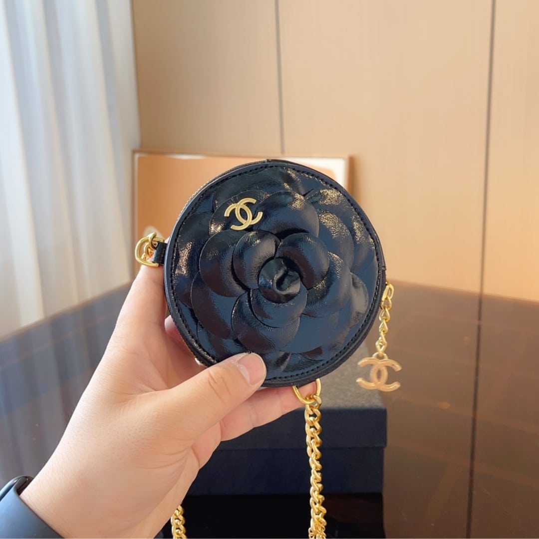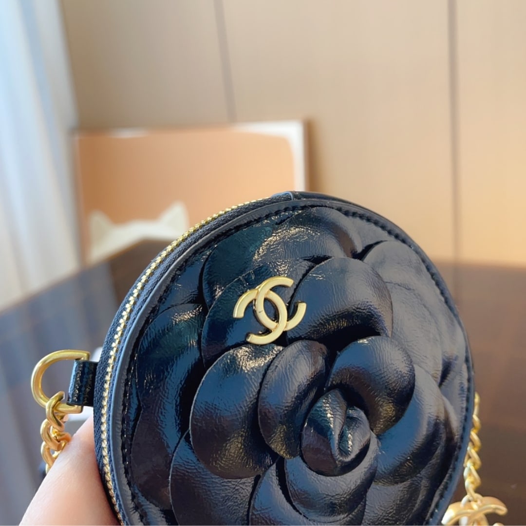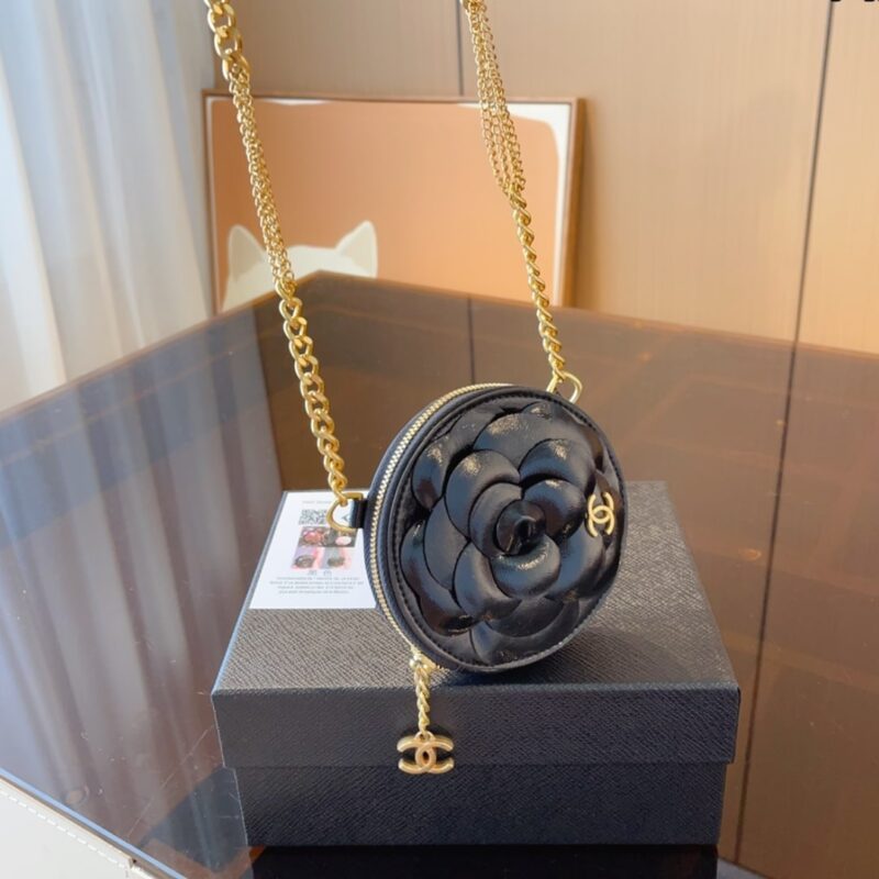 Chanel//Camellia Clutch With Chain//Black//12cm