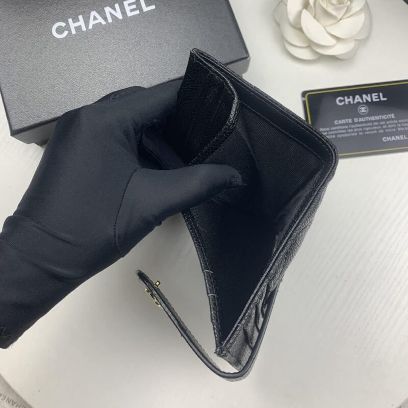 CHANEL CARD HOLDER BLACK WITH GOLD HARDWARE 12CM