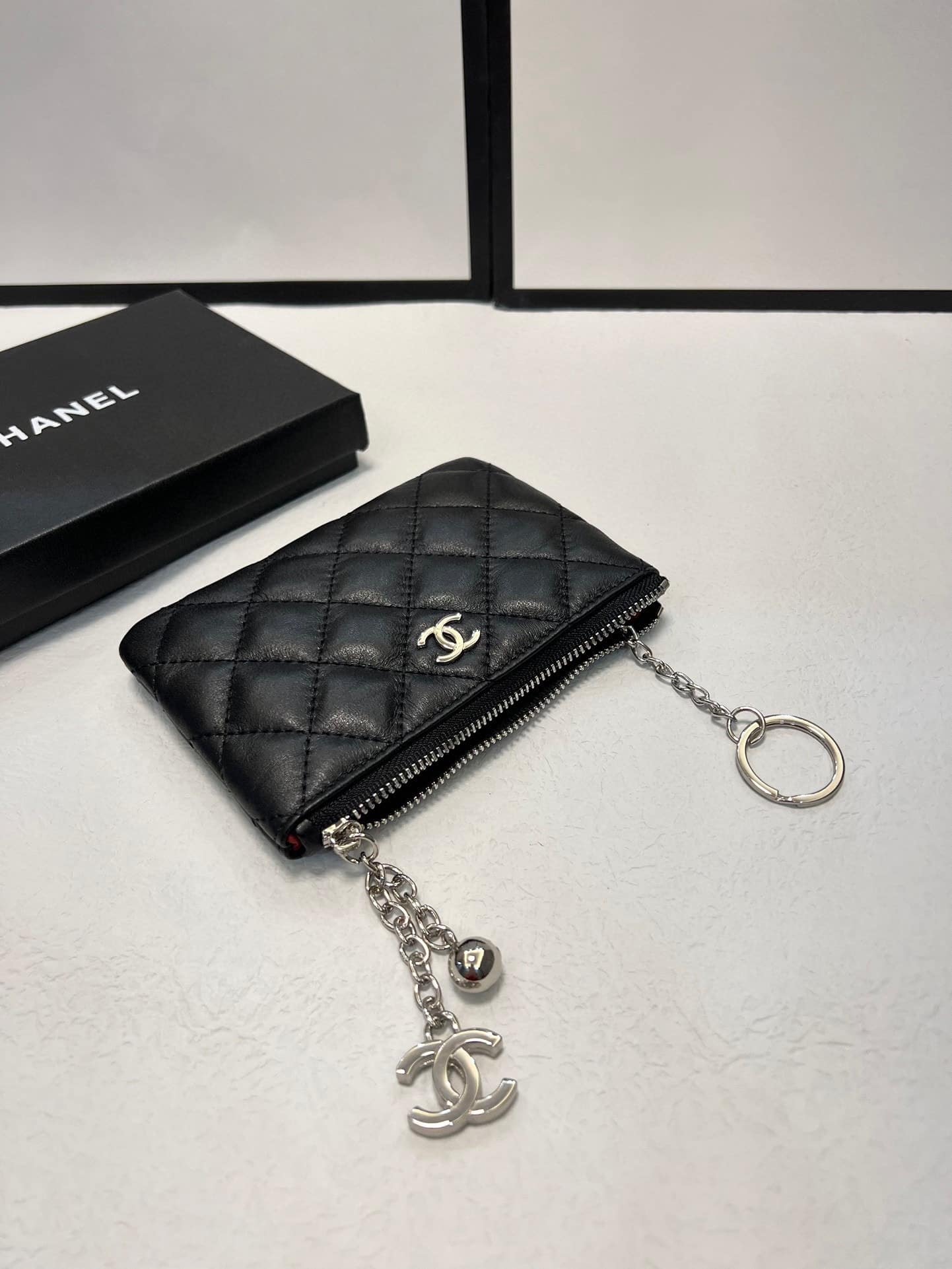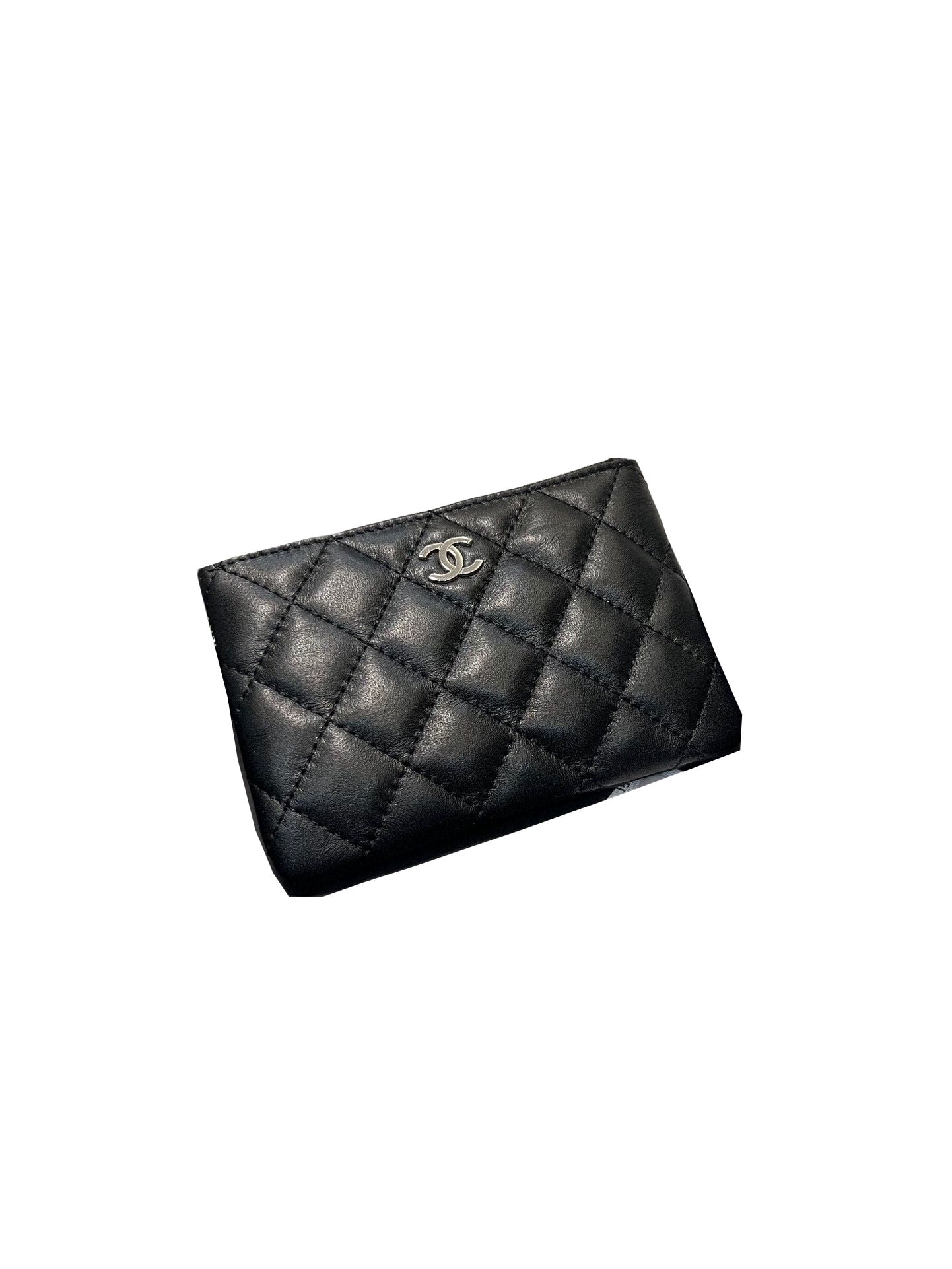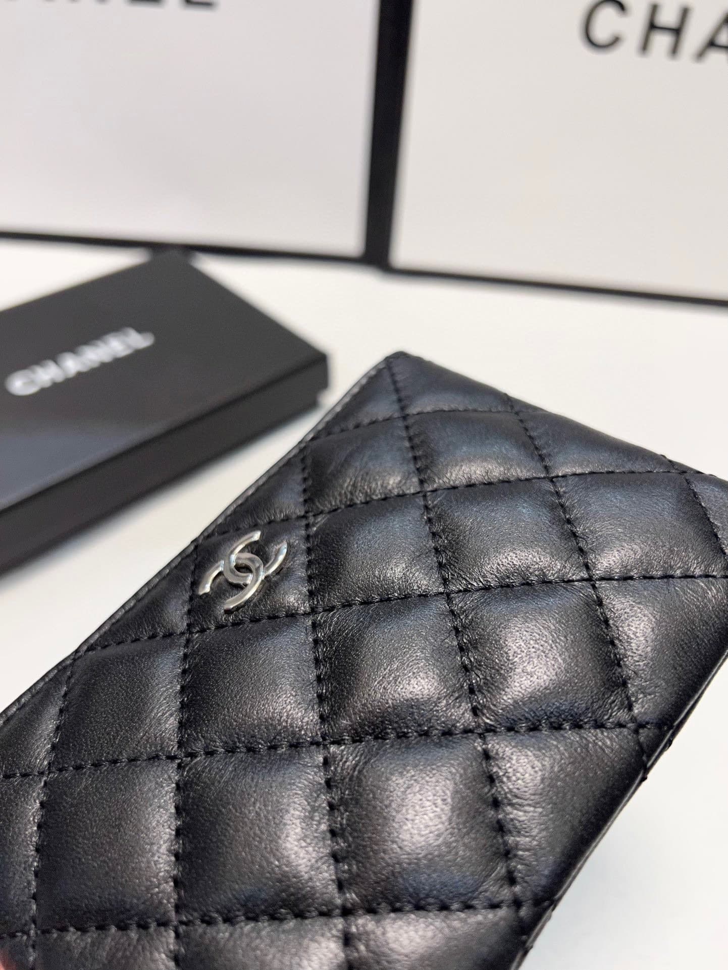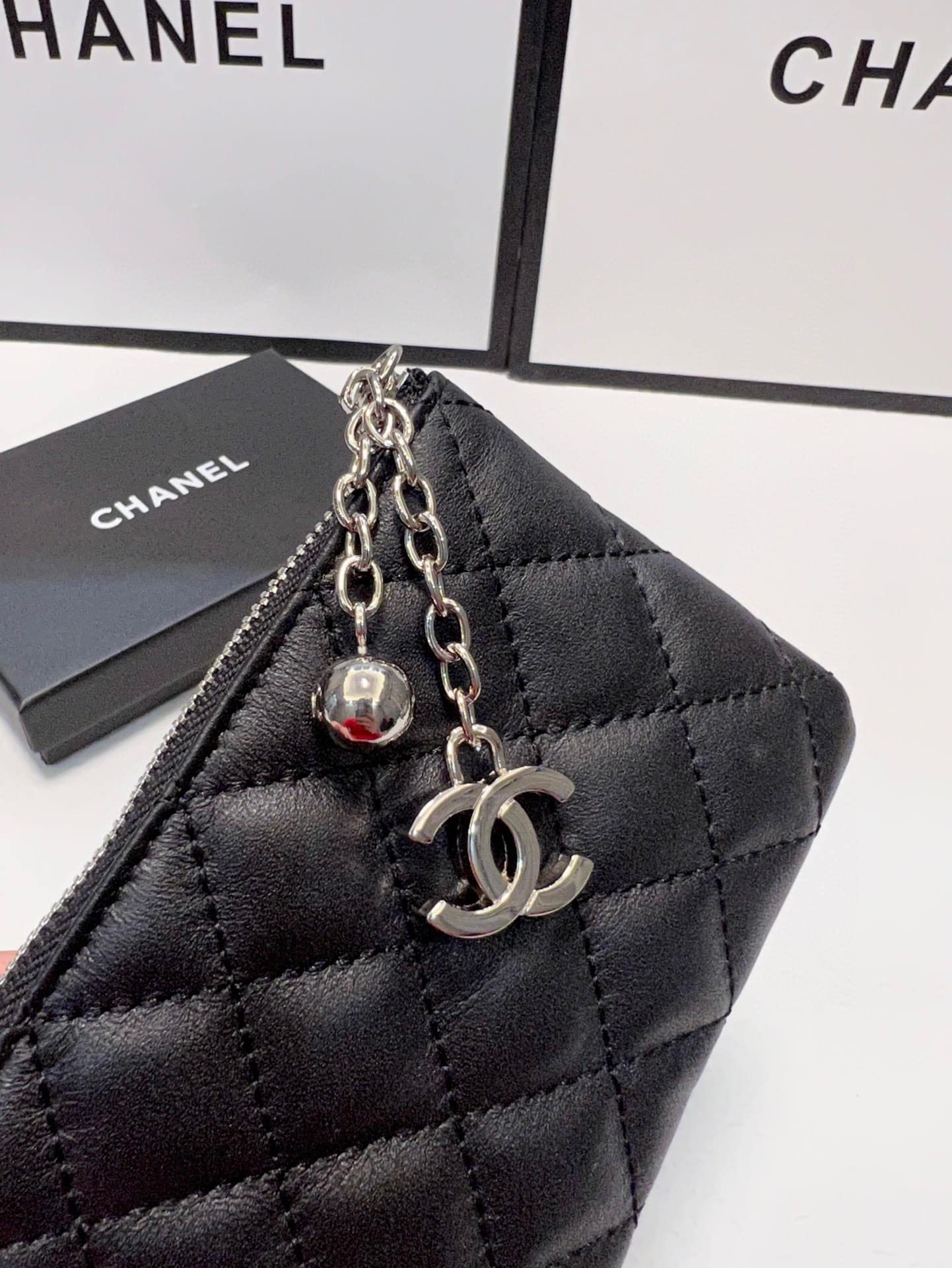 CHANEL CARD HOLDER WITH ZIPPER WALLET BLACK