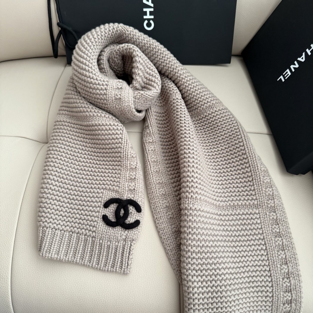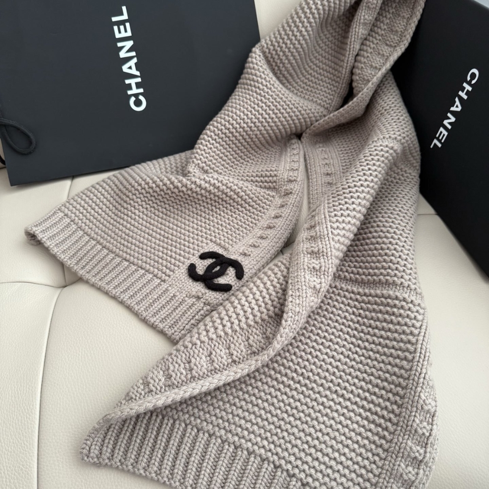 Chanel Cashmere Knit Scarve Beige / Cozy Scarf / Chic Style / Winter accessories