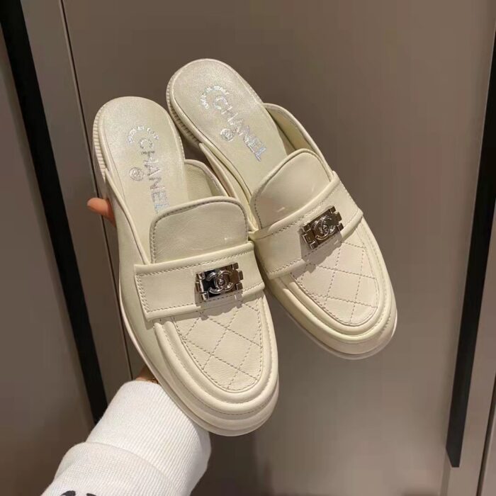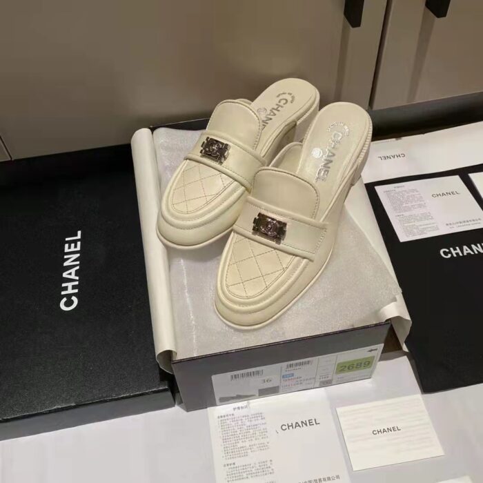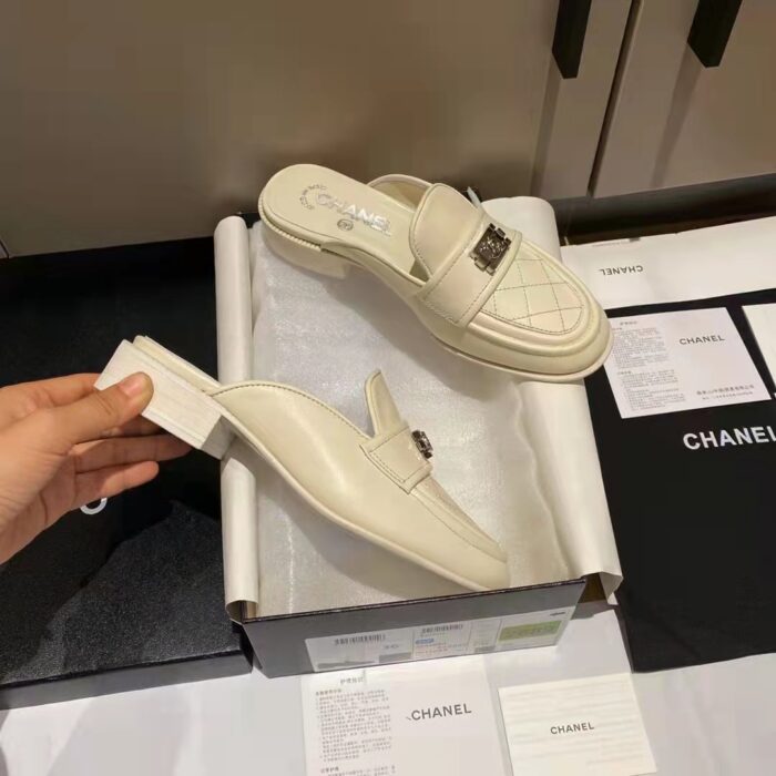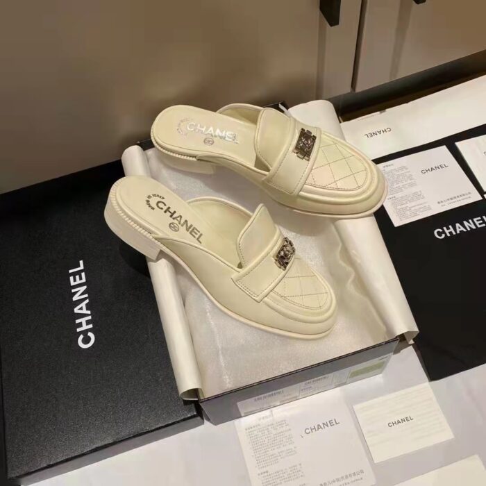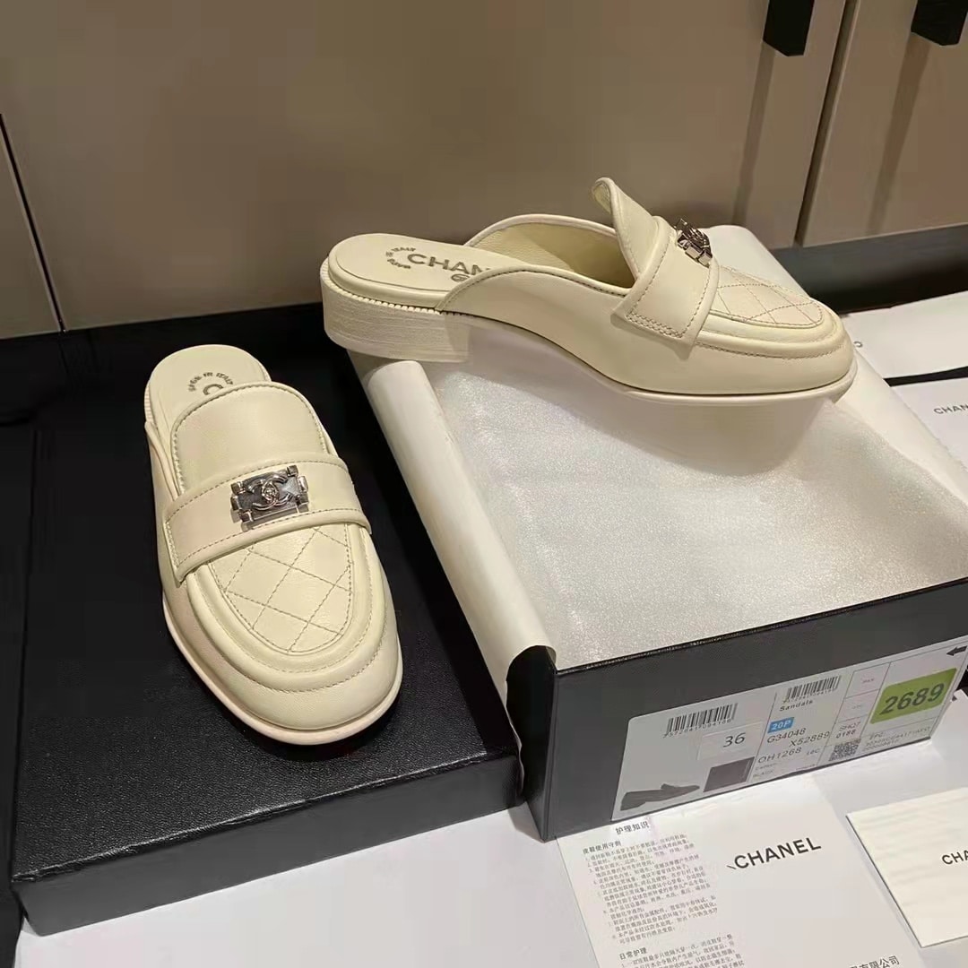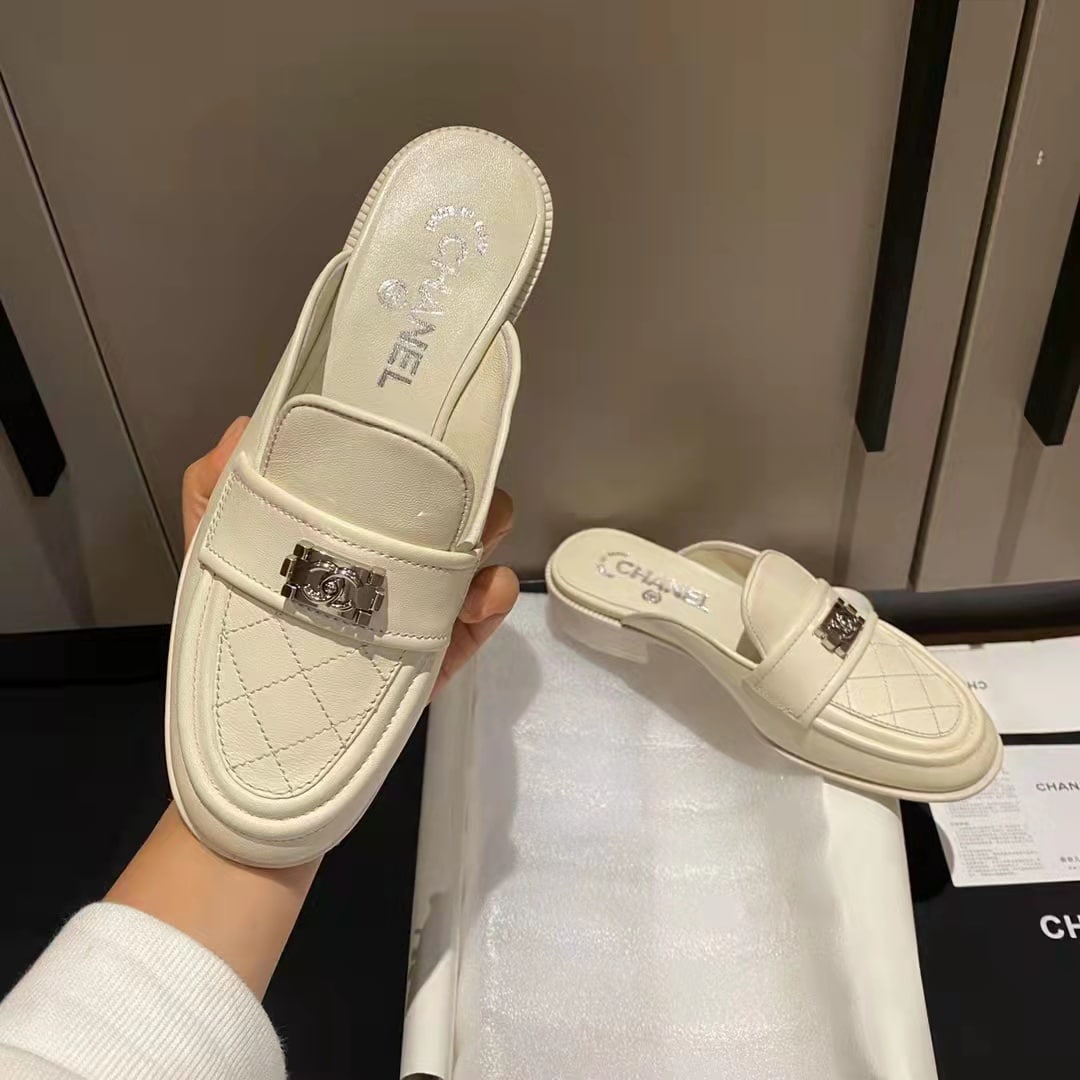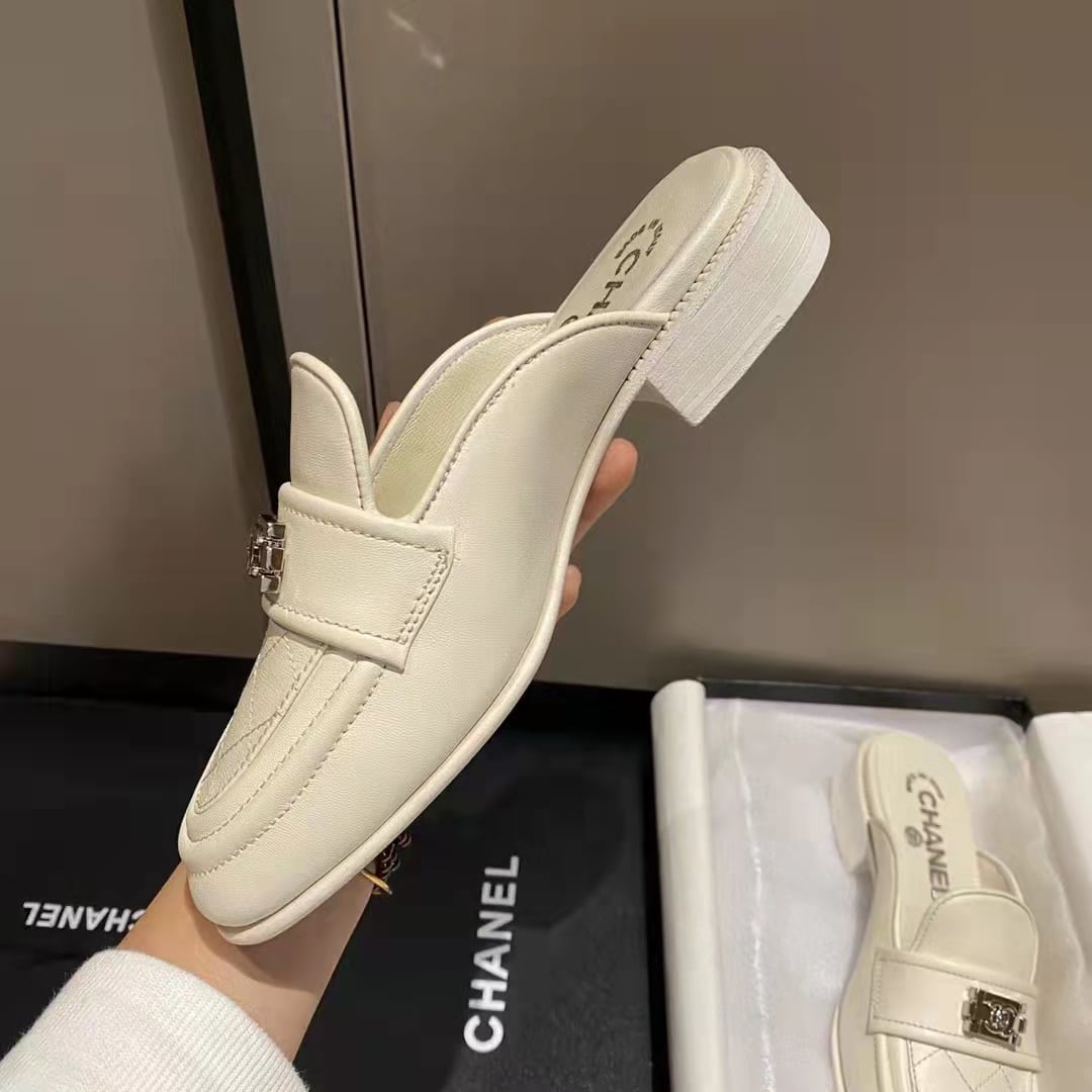CHANEL CASUAL PLAIN LEATHER ELEGANT MULES SANDALS WHITE