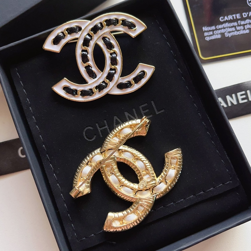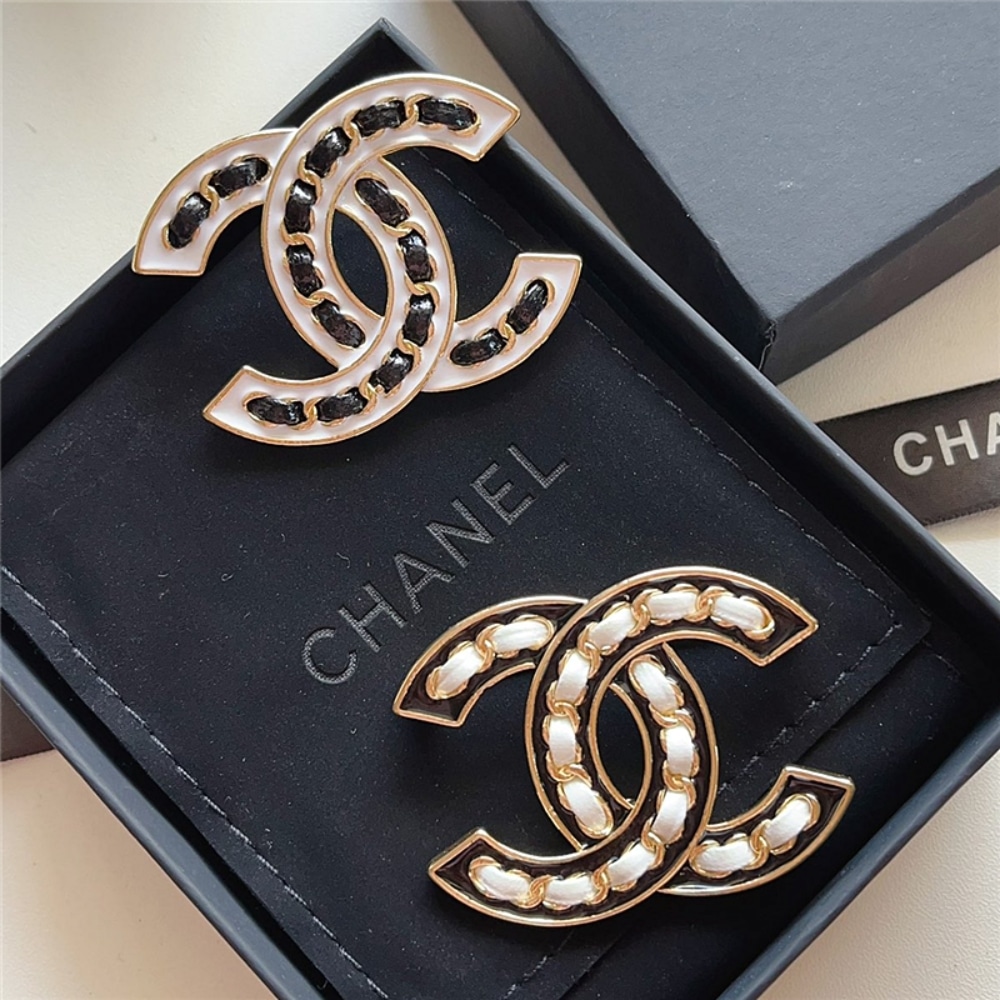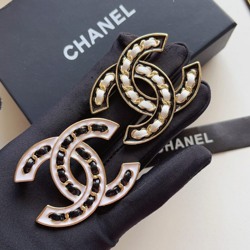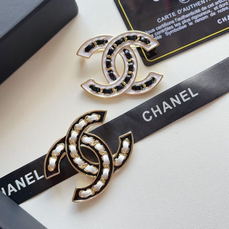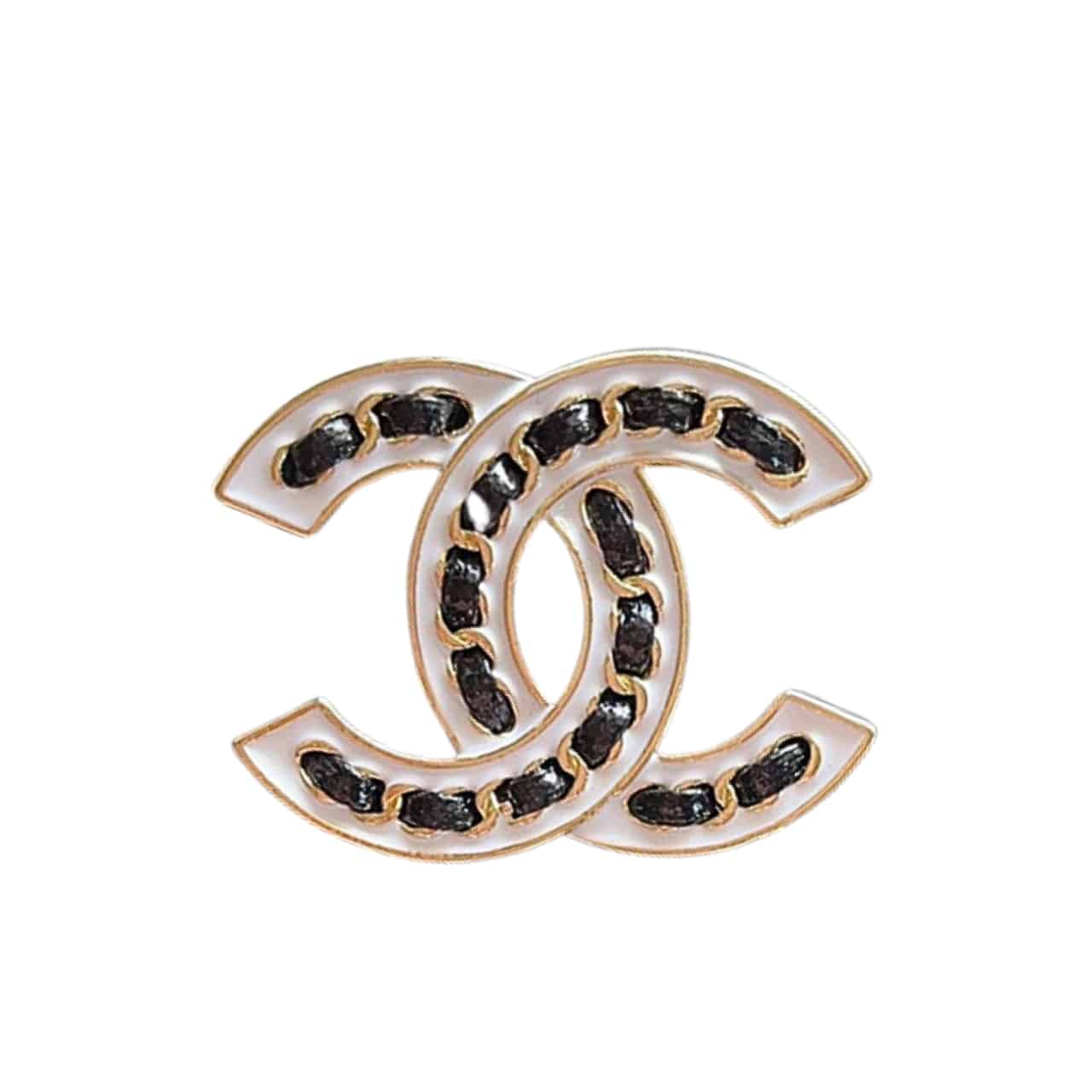 Chanel CC Brooch White With Black Interwoven Chain Pattern