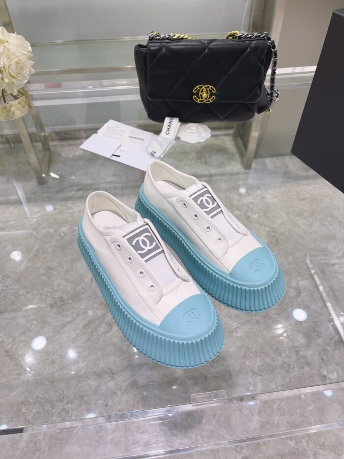 CHANEL CC CAP TOE SNEAKER WHITE AND BLUE
