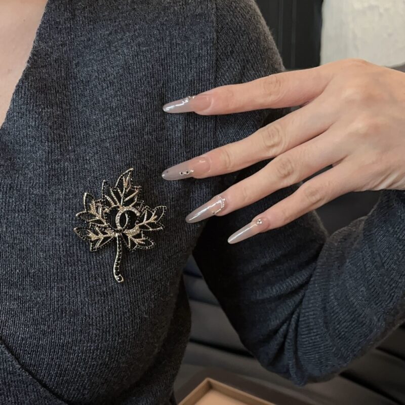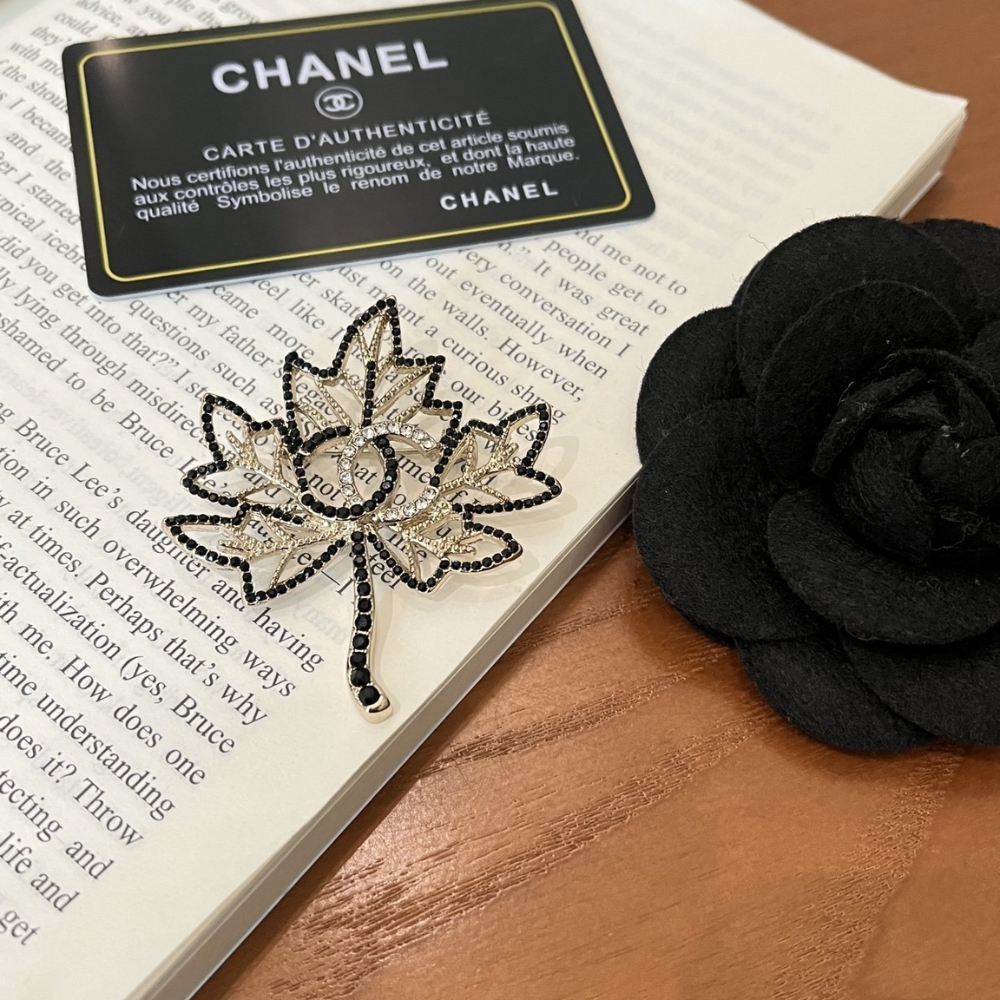 Chanel Brooch / CC Leaf Black / Gold tone hardware / Elegant style
