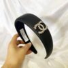 Chanel Cc Leather Headband With Gold Hardware In Black