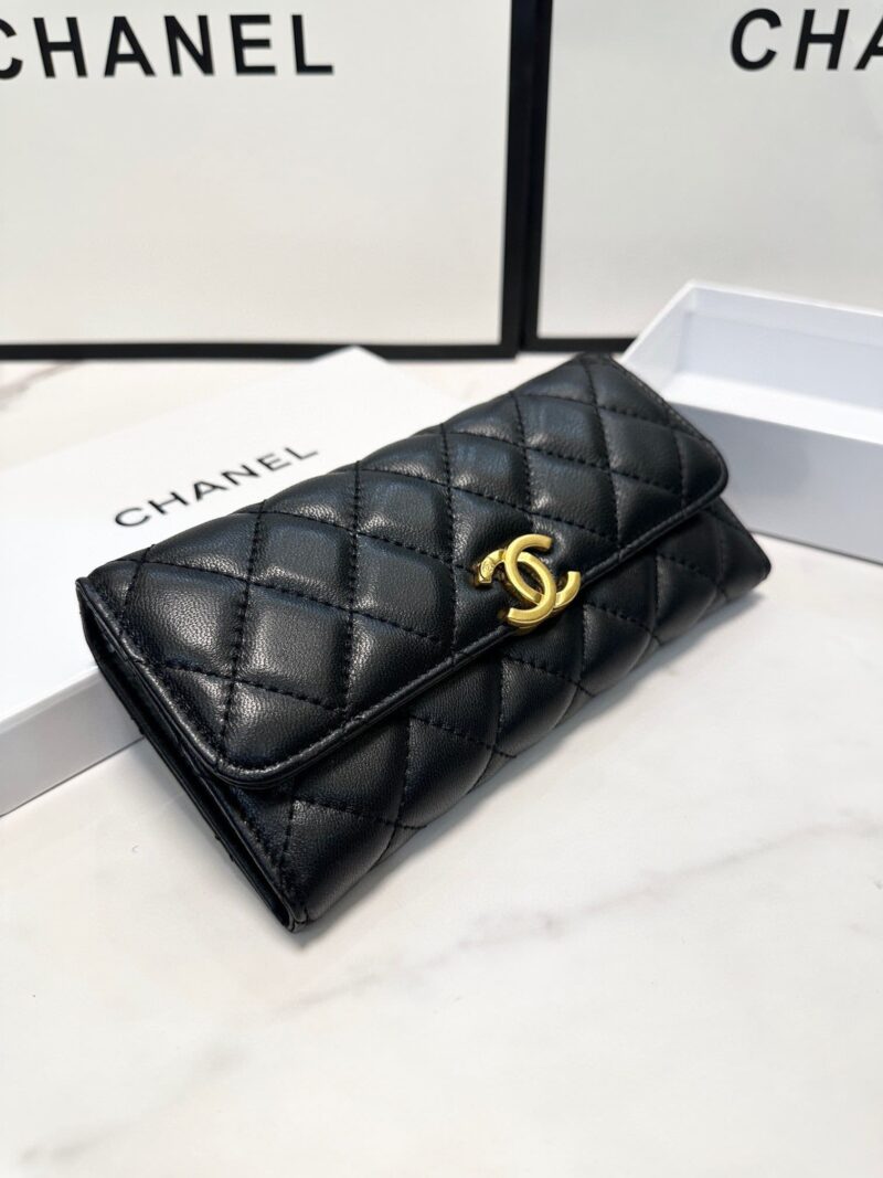 Chanel CC Logo Long Flap Wallet Gold Black / 19Cm / 7.4 inches