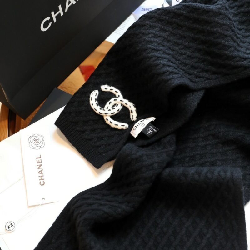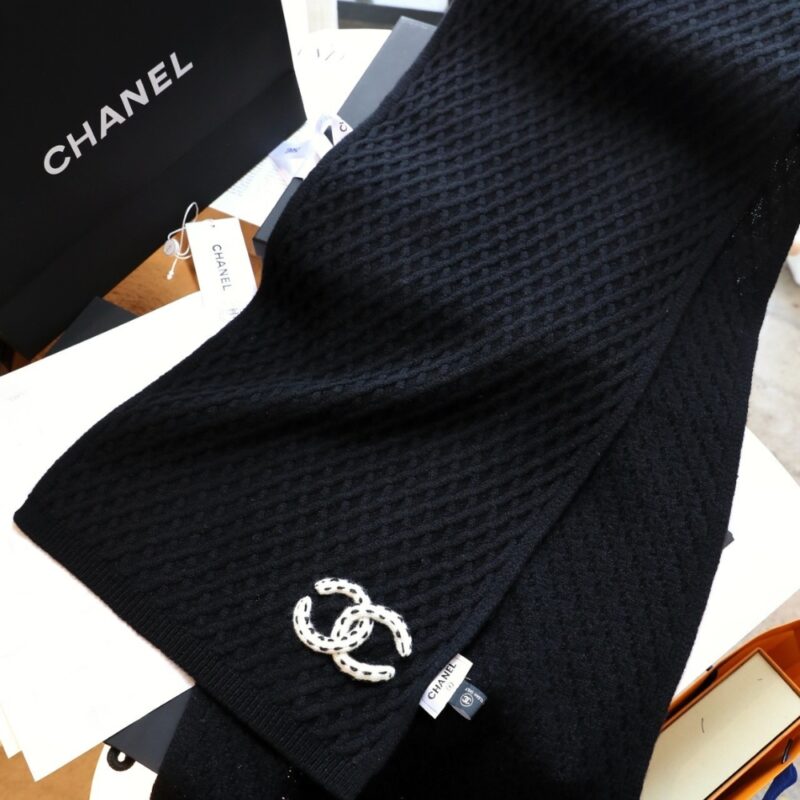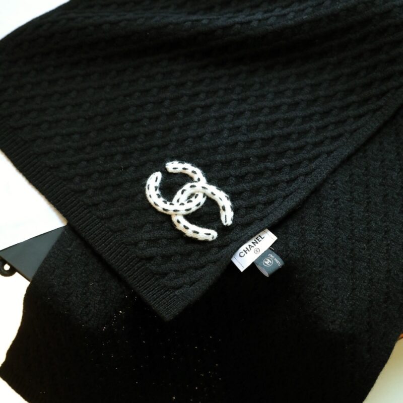 Chanel Patch Cashmere Scarf Black / CC logo / Cozy Scarf / Chic Style