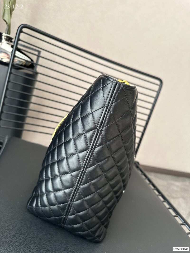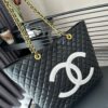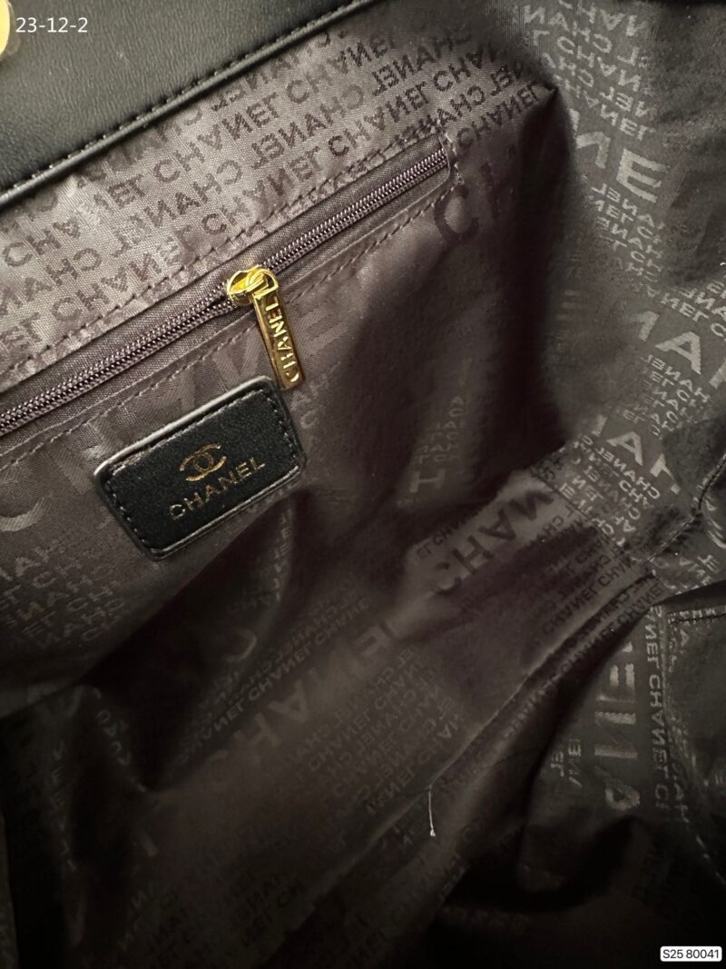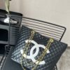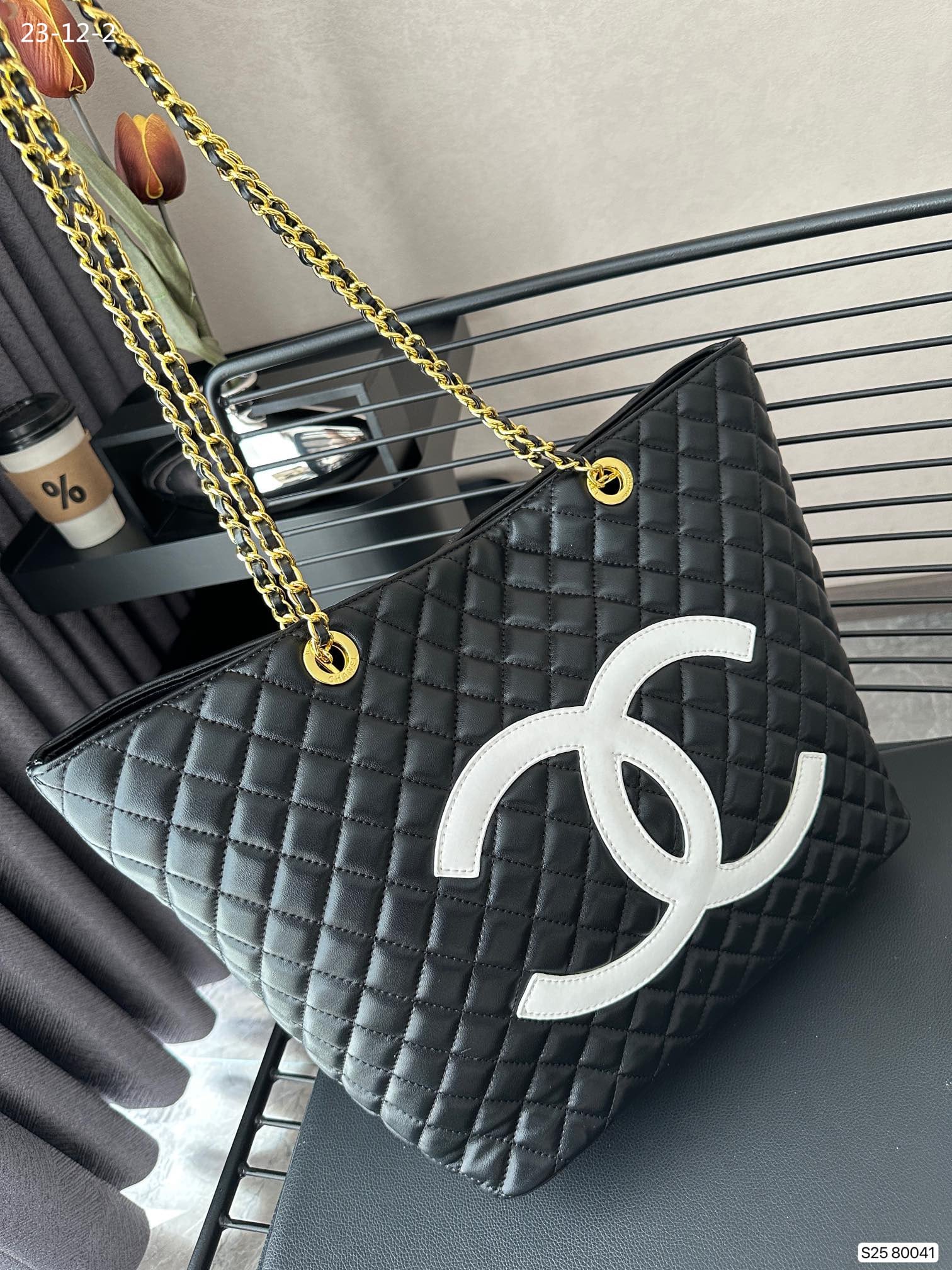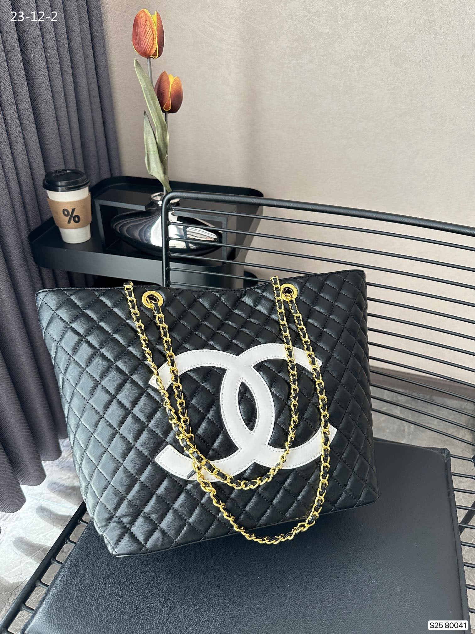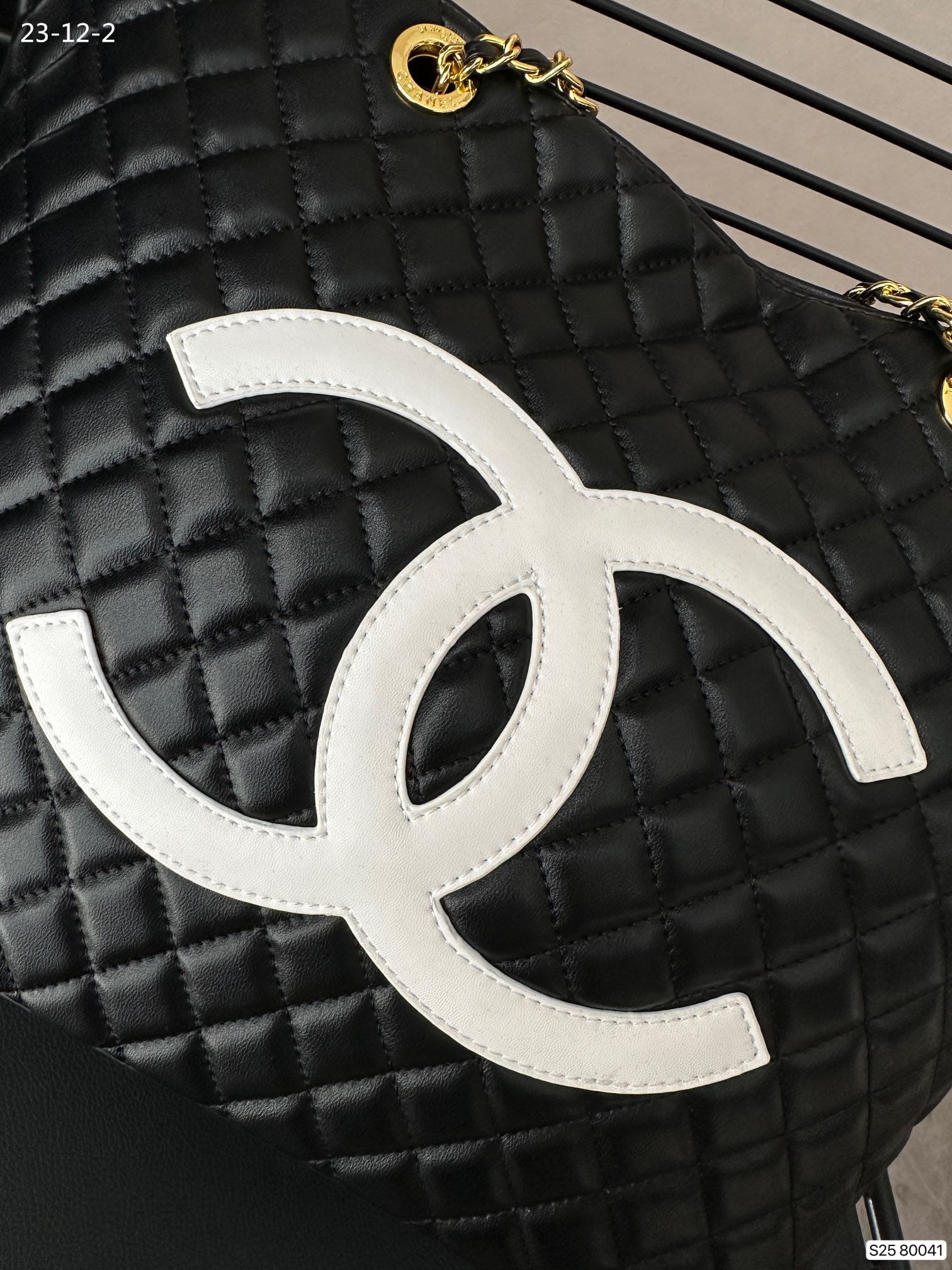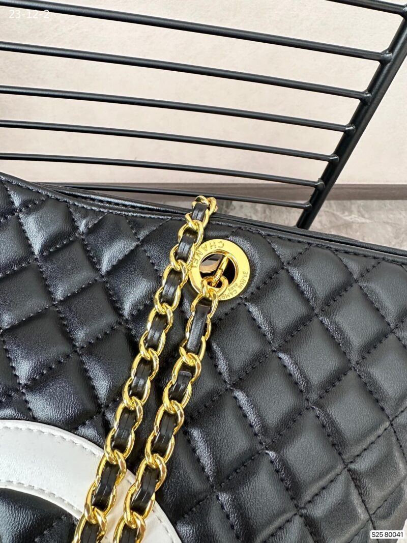 Chanel Cc Shopping Bag With Chain Leather / Black And White 32cm