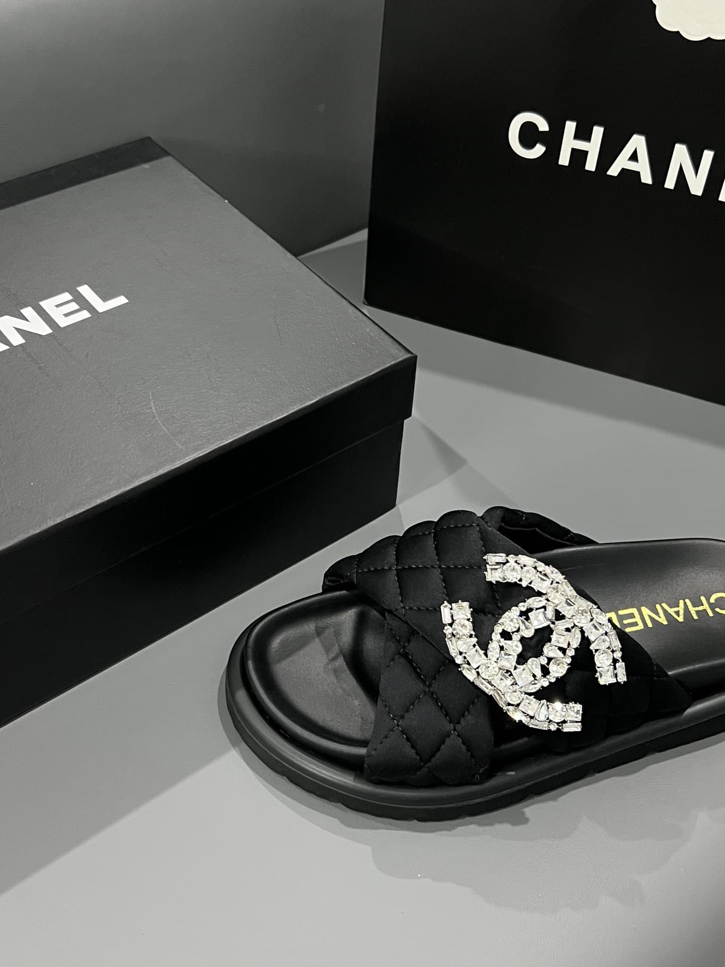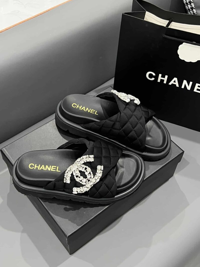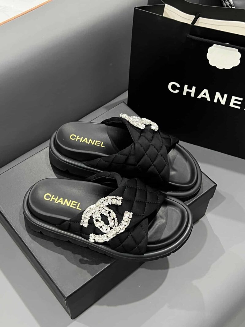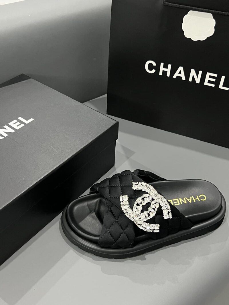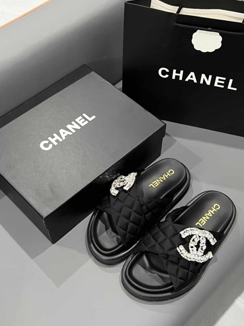 CHANEL CC SLIPPERS STUDDED BLACK