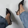 Chanel Cc Toe Cap Bow Slingback Pumps Black