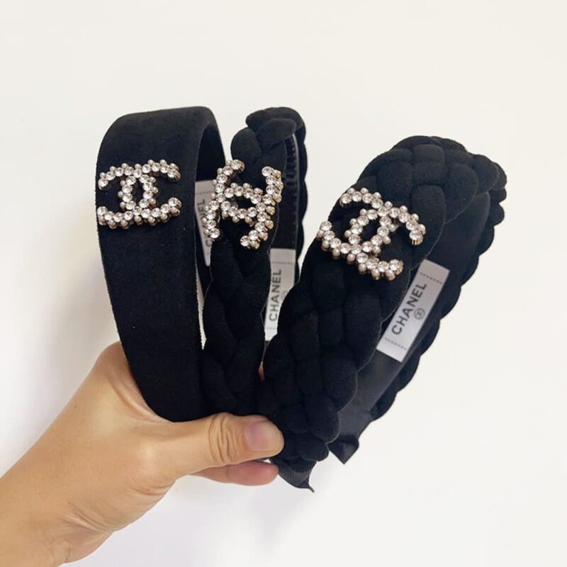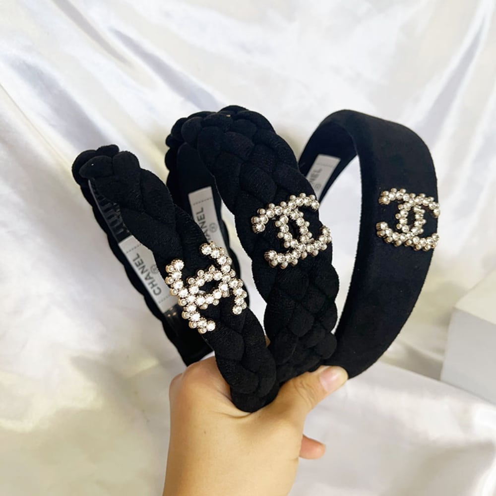 Chanel Cc Tweed Headband With Gold Hardware In Salt And Pepper
