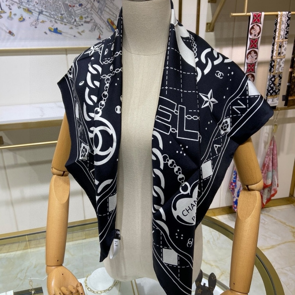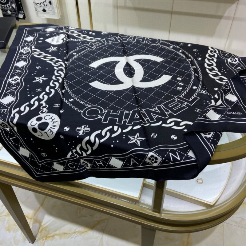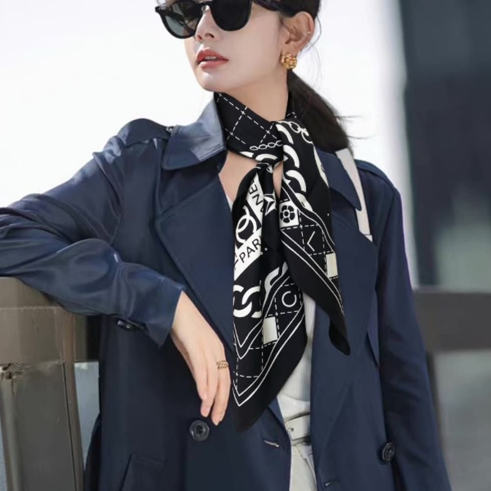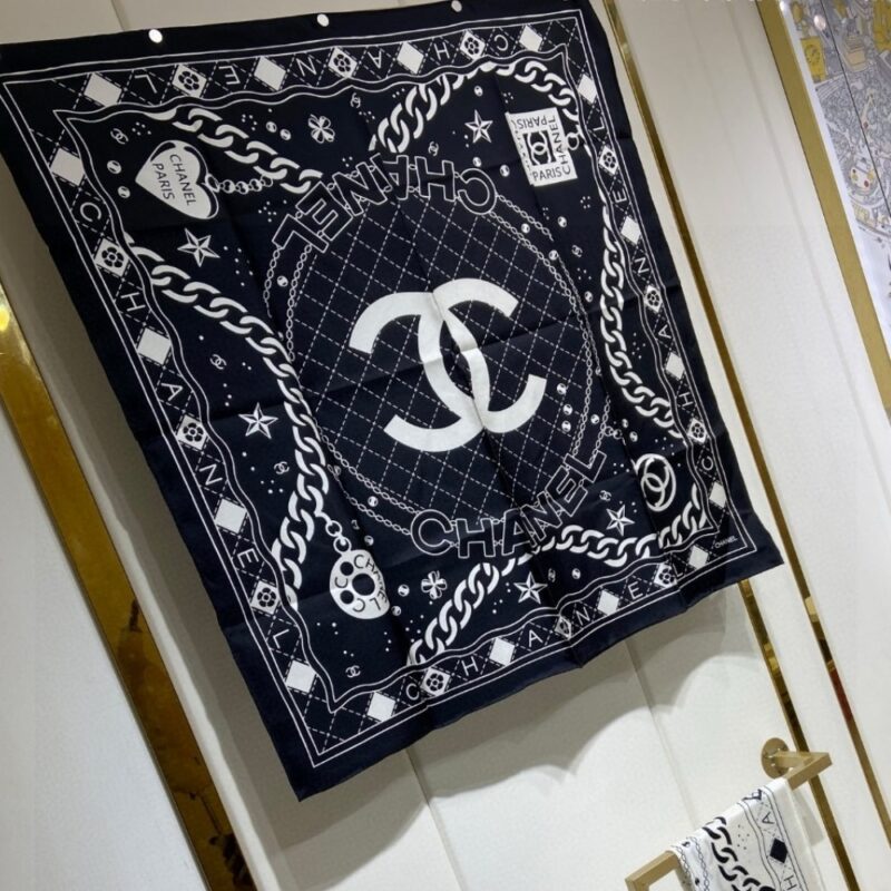 Chanel Classic Double C Logo Print Silk Scarf Black 90cm