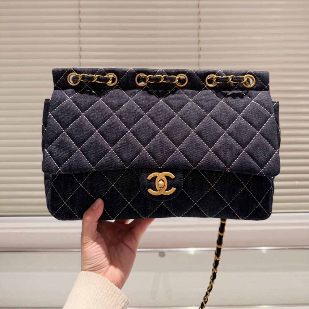 Chanel Classic Flap Bag In Denim Dark Blue/ 30 cm / 11.8 inches