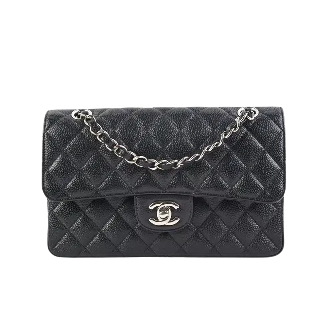 CHANEL CLASSIC GRAIN SILVER HARDWARE HANDBAG BLACK A01112