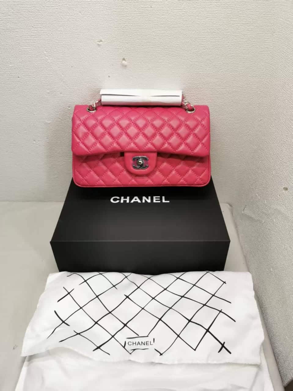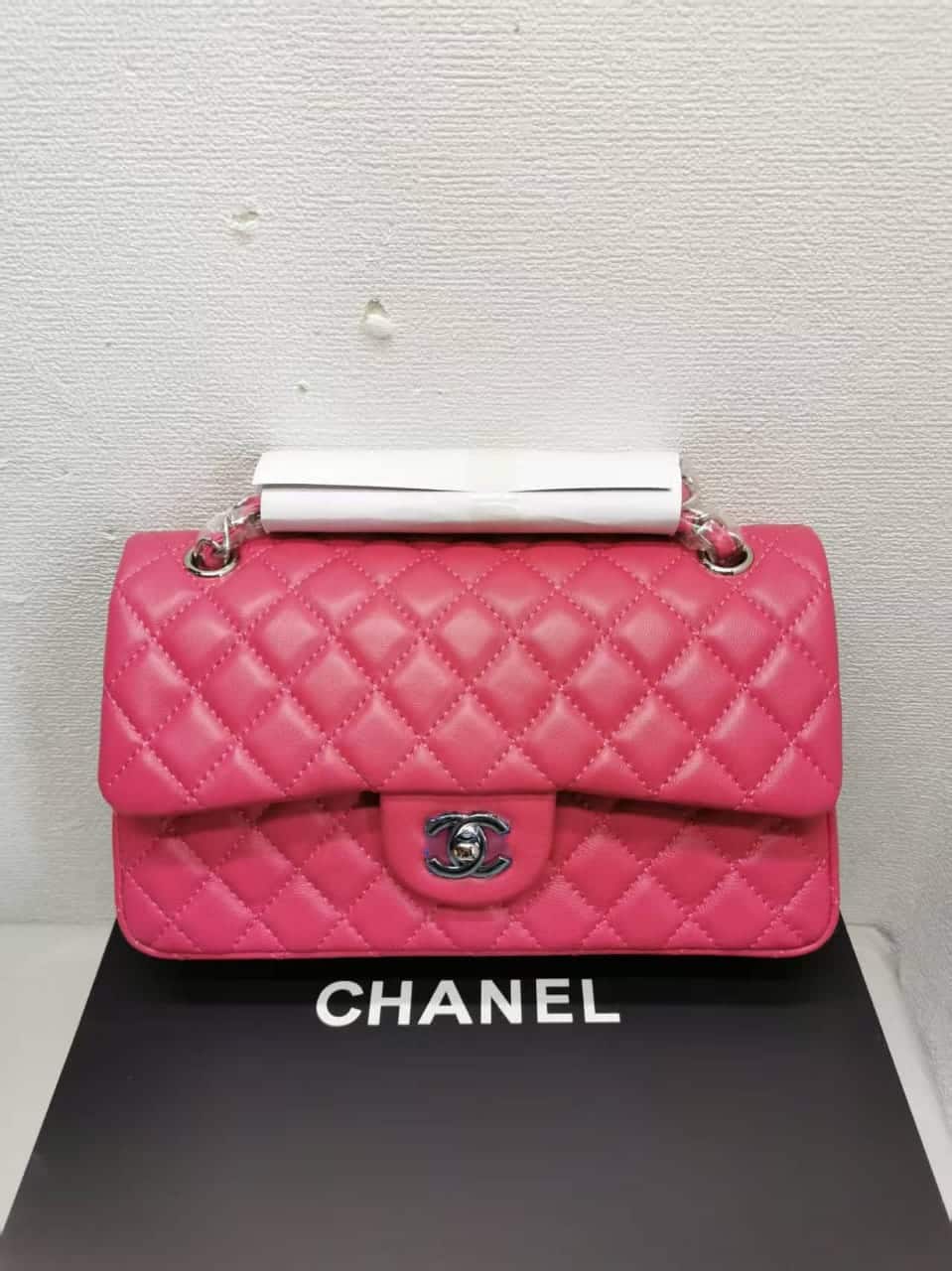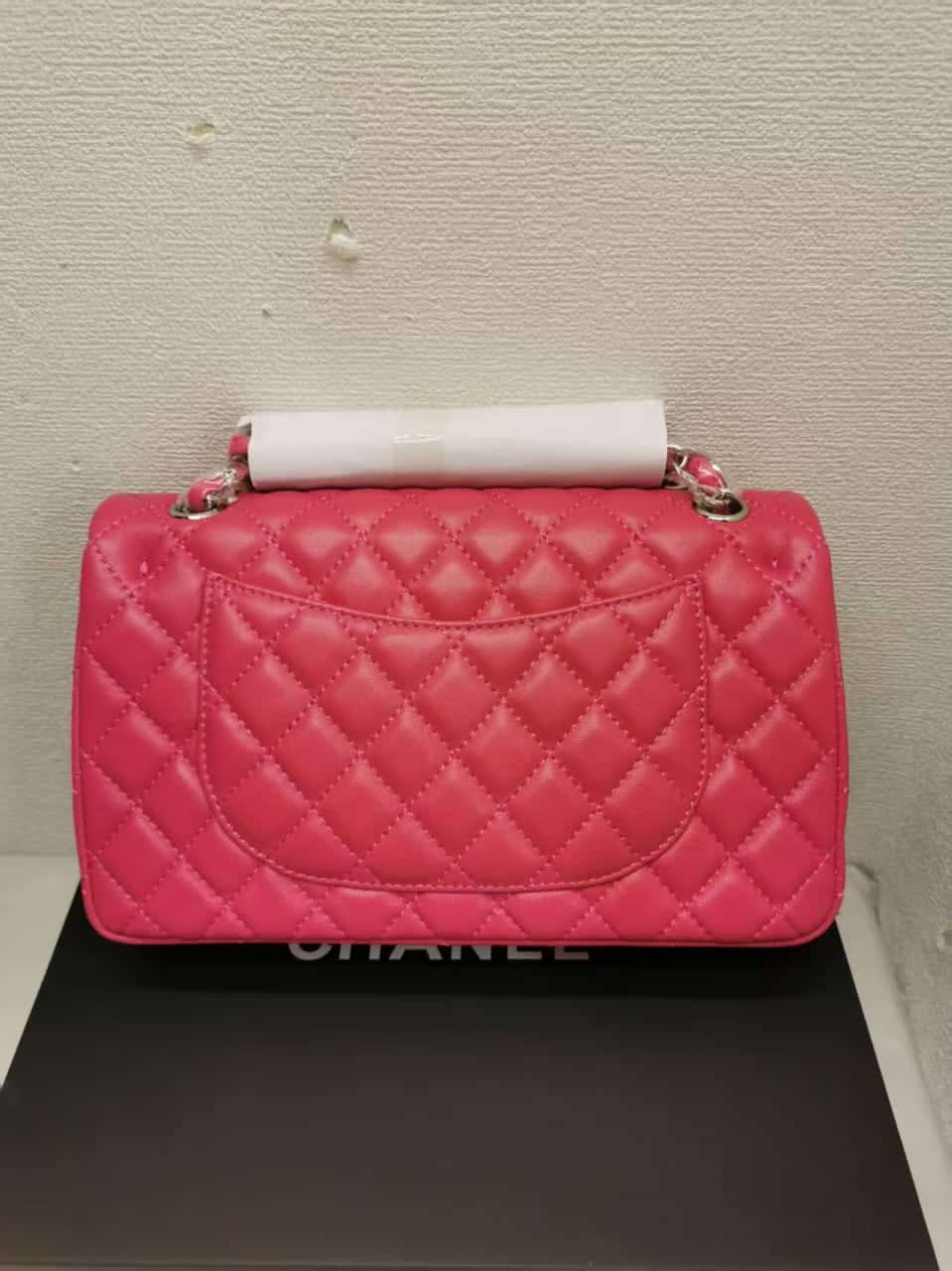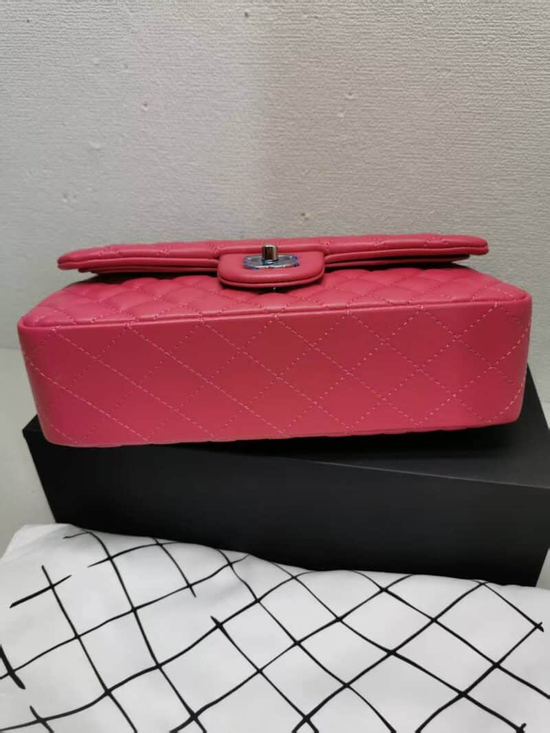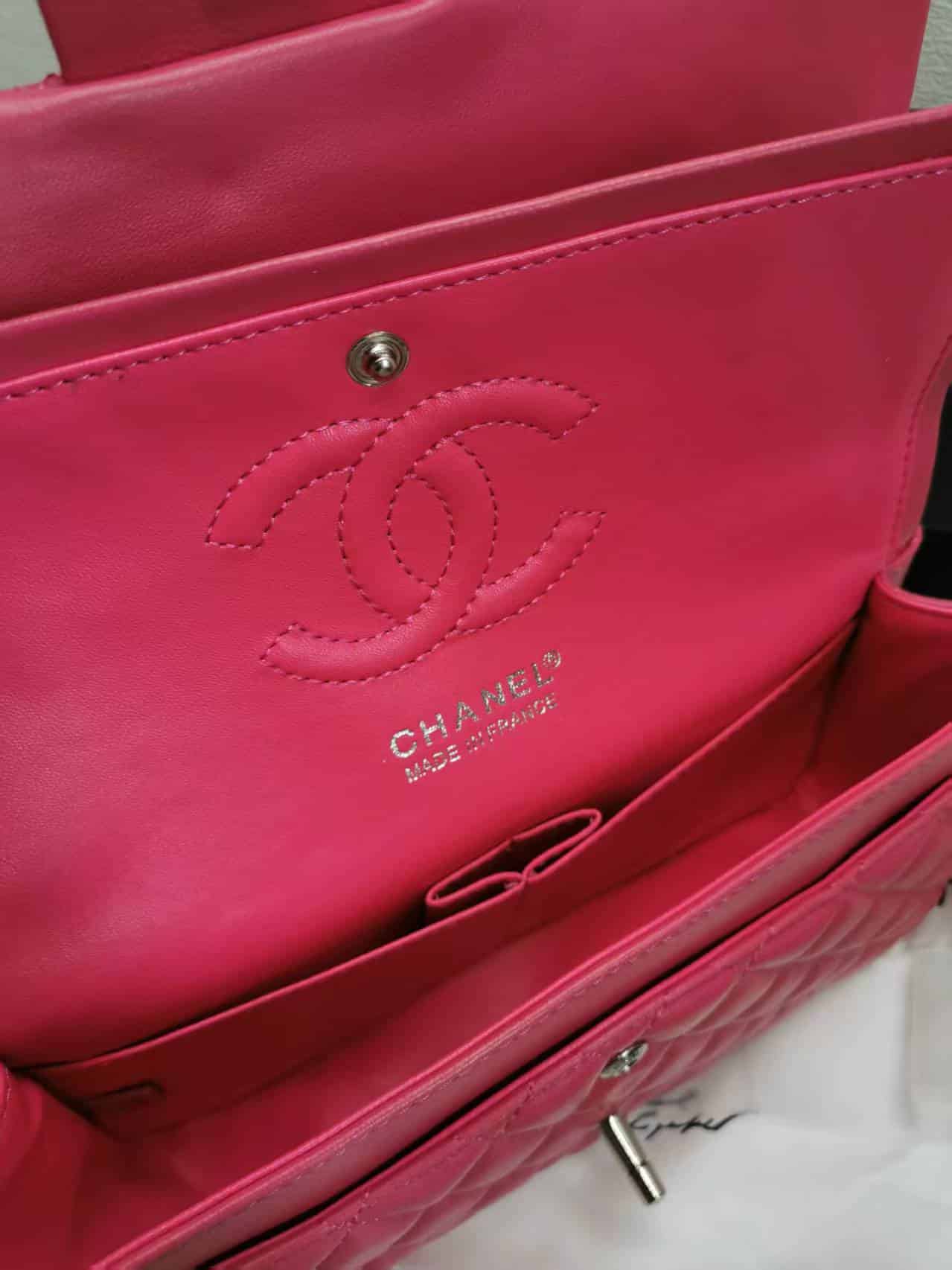 CHANEL CLASSIC MEDIUM FLAP BAG WITH SILVER HARDWARE DARK PINK 25CM