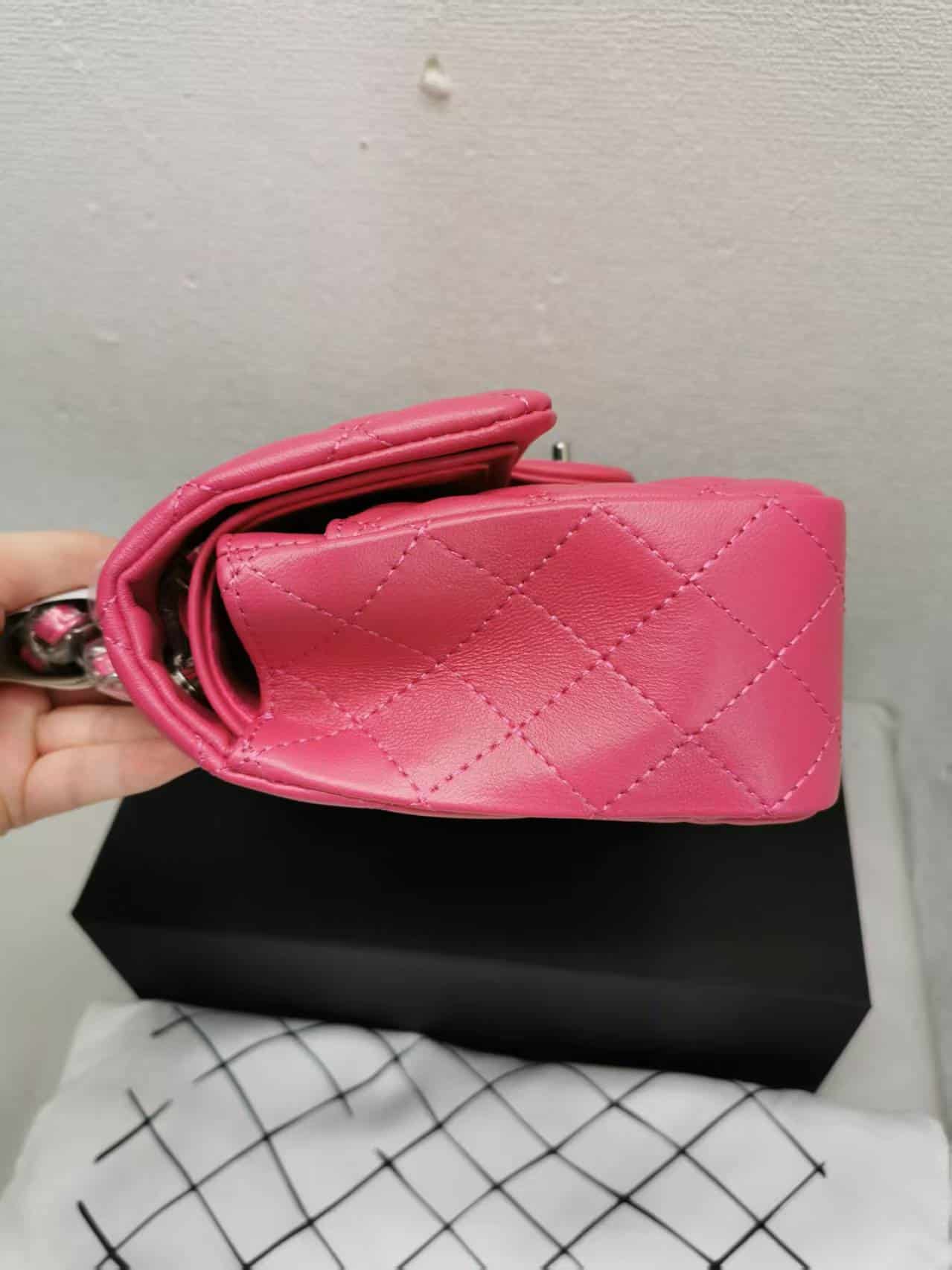 Chanel Classic Medium Flap Bag With Silver Hardware Dark Pink / 25 cm / 9.8 inches.