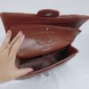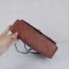 The Chanel Classic Medium Double Flap Bag is perhaps the most sought after bag in Chanel’s classic collection, which continually increase in value. This gorgeous bag features a lovely rich, Light brown. The bag is made from buttery soft leather, and also features a silver tone turnlock CC closure and chains. The versatile leather strap chain can be worn on the shoulder or lengthened to wear with a longer drop. An elegant and timeless piece to add to any collection.
