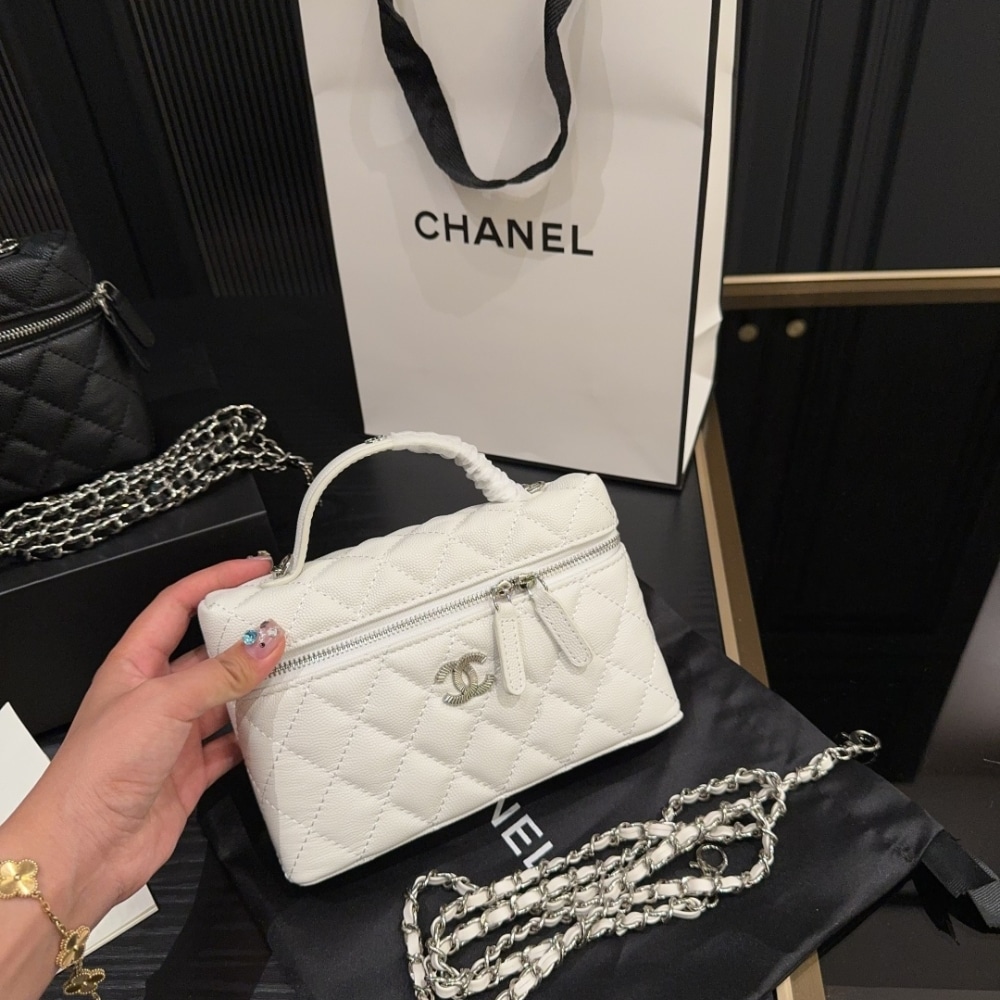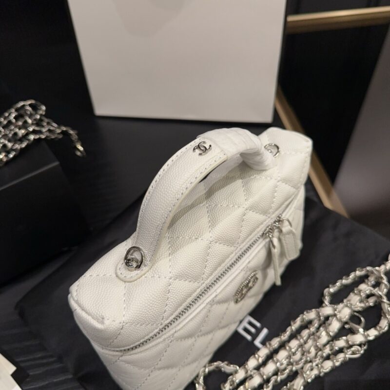 Chanel Classic Vanity with Chain in Grained Shiny White AP4414 B18713 NAAUH / 19cm / 7.5 inches
