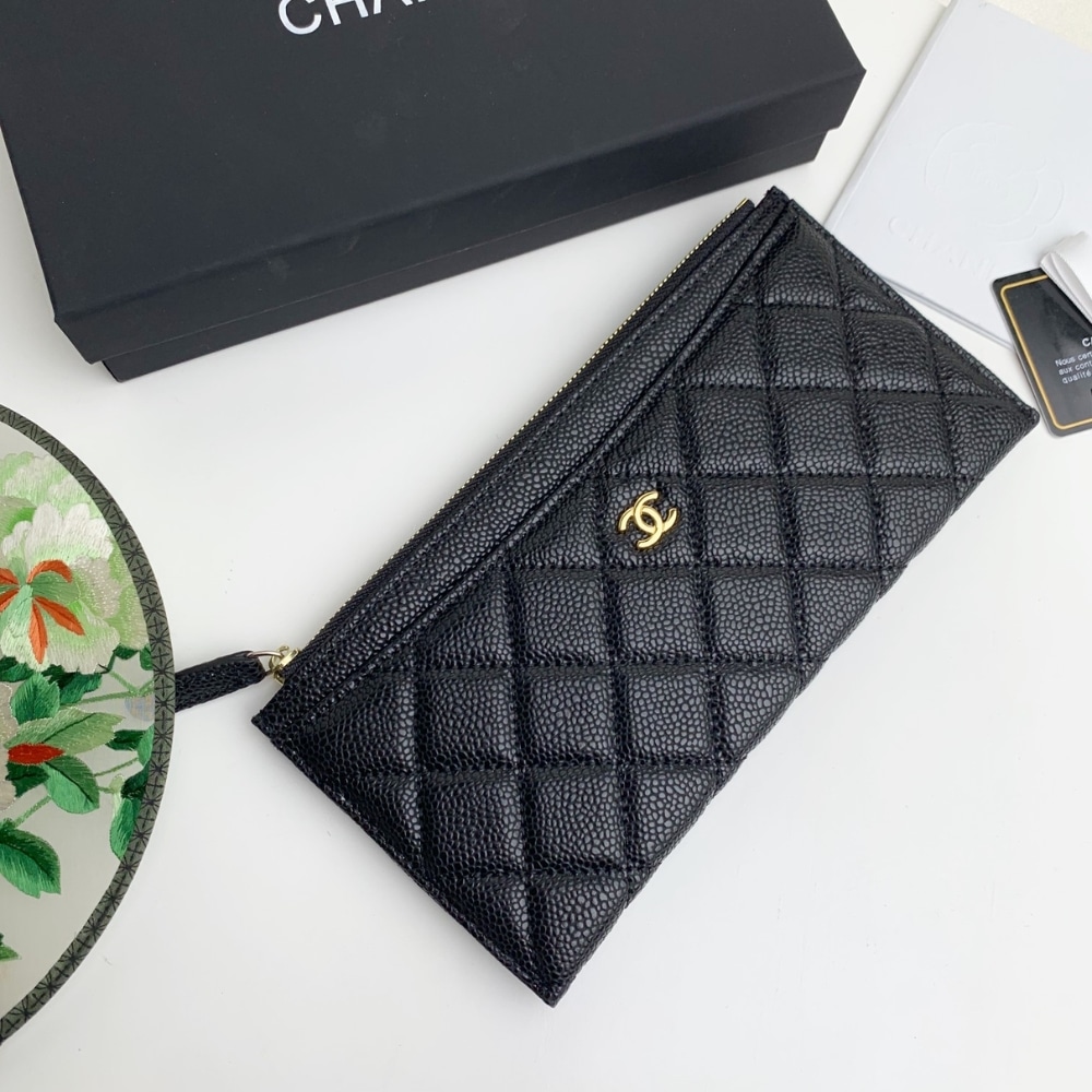 Chanel Classic Zip Pouch Caviar Wallet Black 22 cm / 8.7 inches
