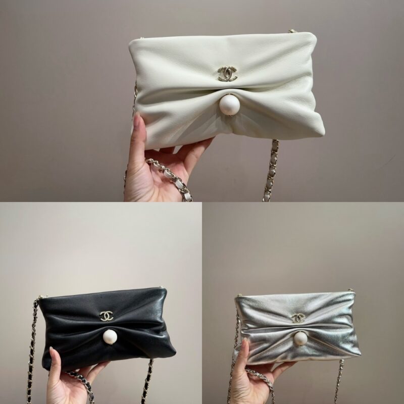 Chanel Clutch With Chain Gold Tone Metal Silver 24Cm AP4613 B20166 94306