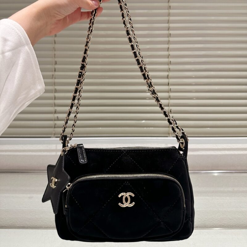 Chanel Clutch With Chain Black / 8.3 x 5.5 inches / Velvet-Effect Nylon / Fit Daily Essentials / Daily Bags