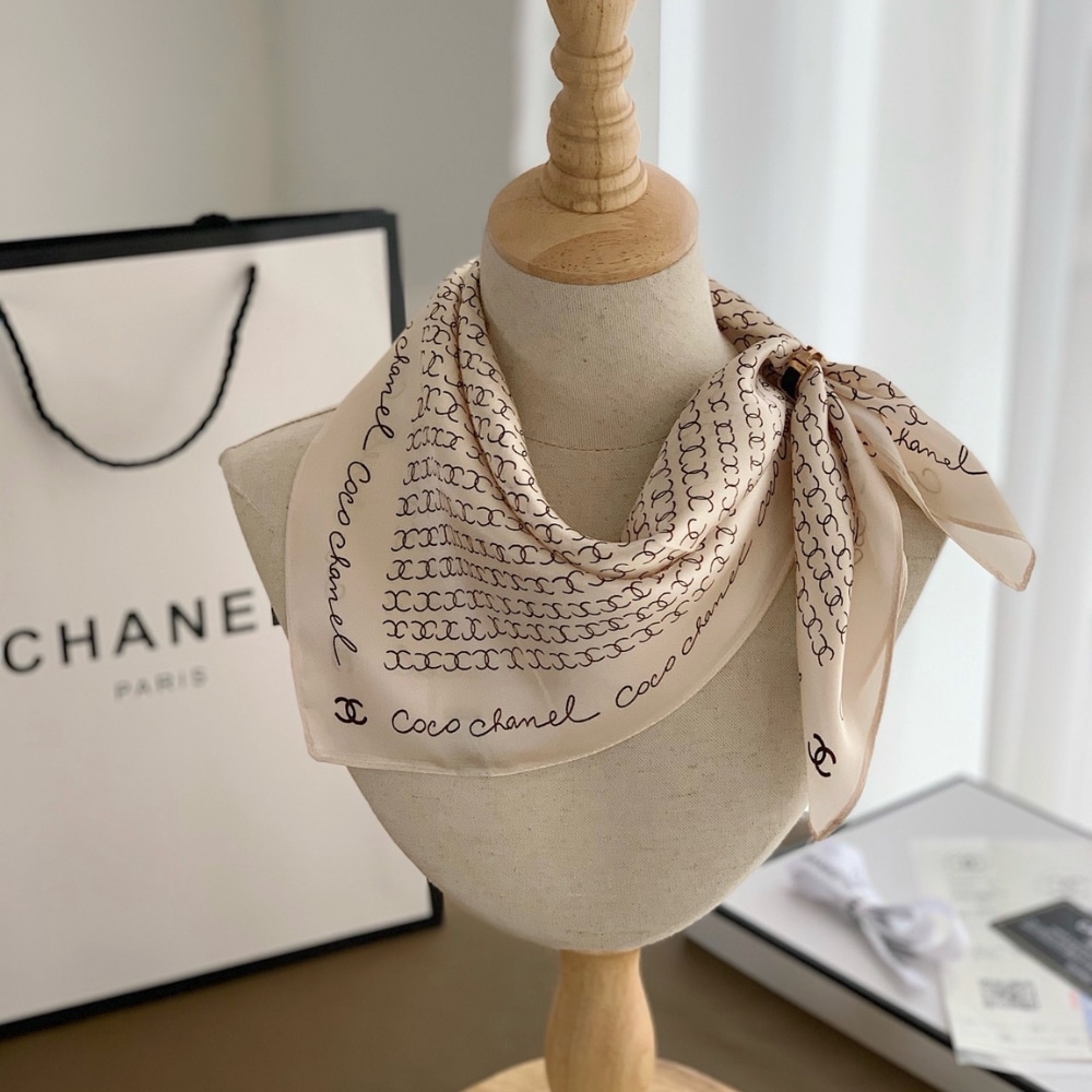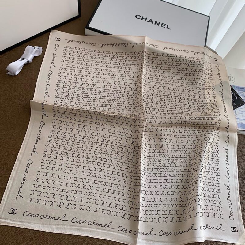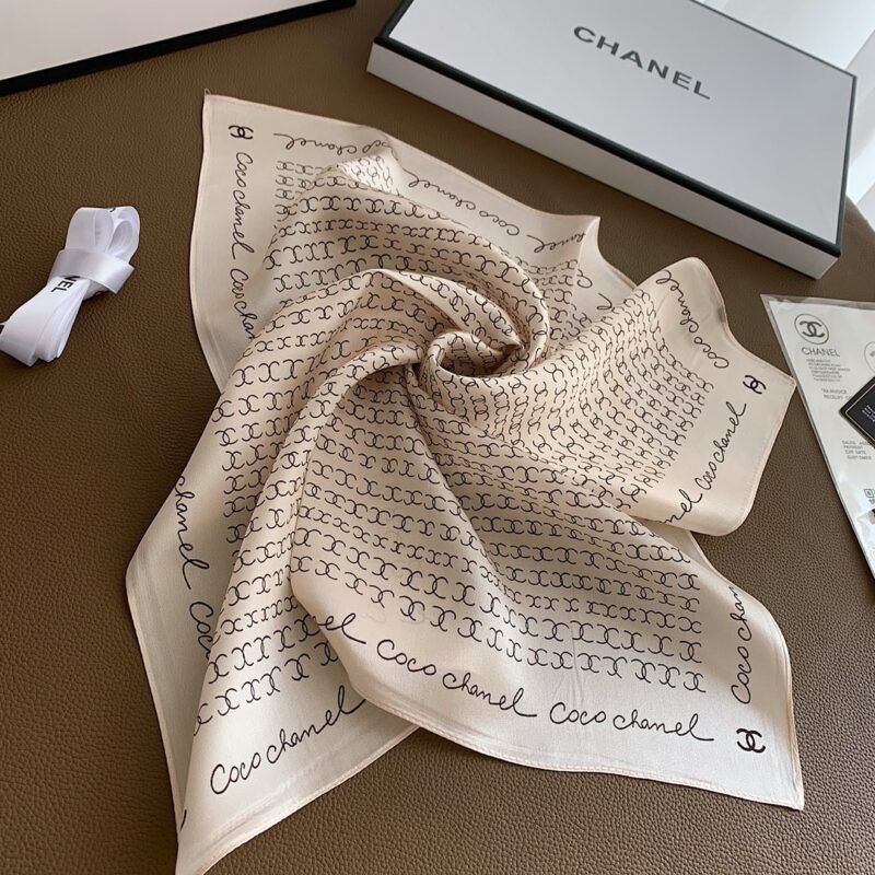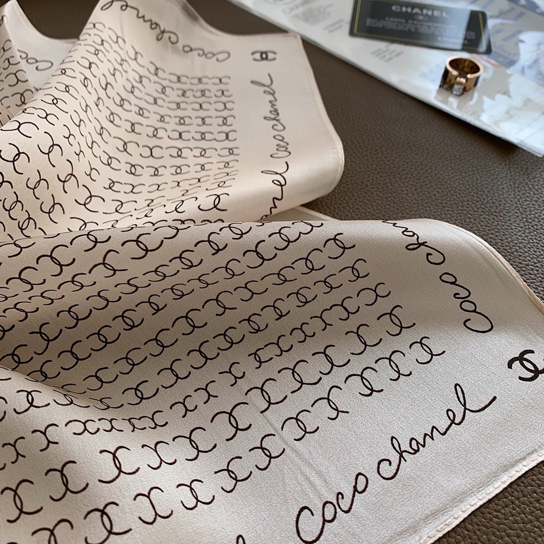 Chanel Coco Signature Silk Scarf In Beige 70cm