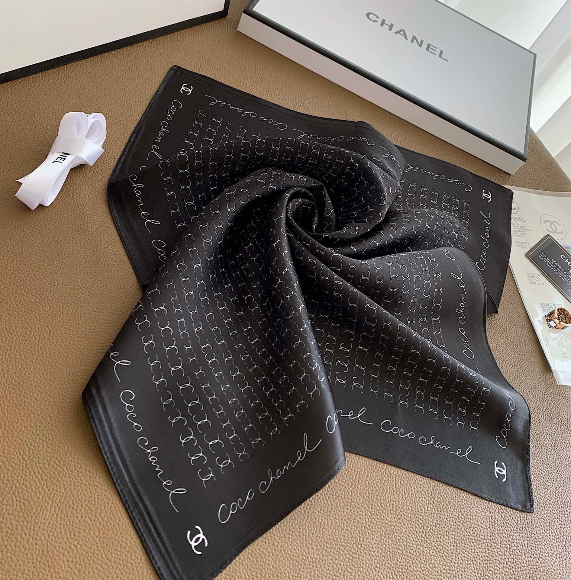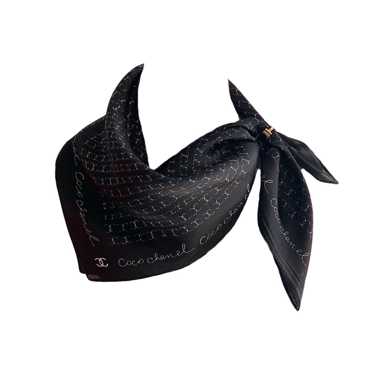 Chanel Coco Signature Silk Scarf In Black 70cm