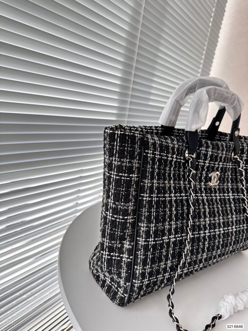 CHANEL DEAUVILLE LARGE TOTE SHOPPING BAG BLACK 38CM