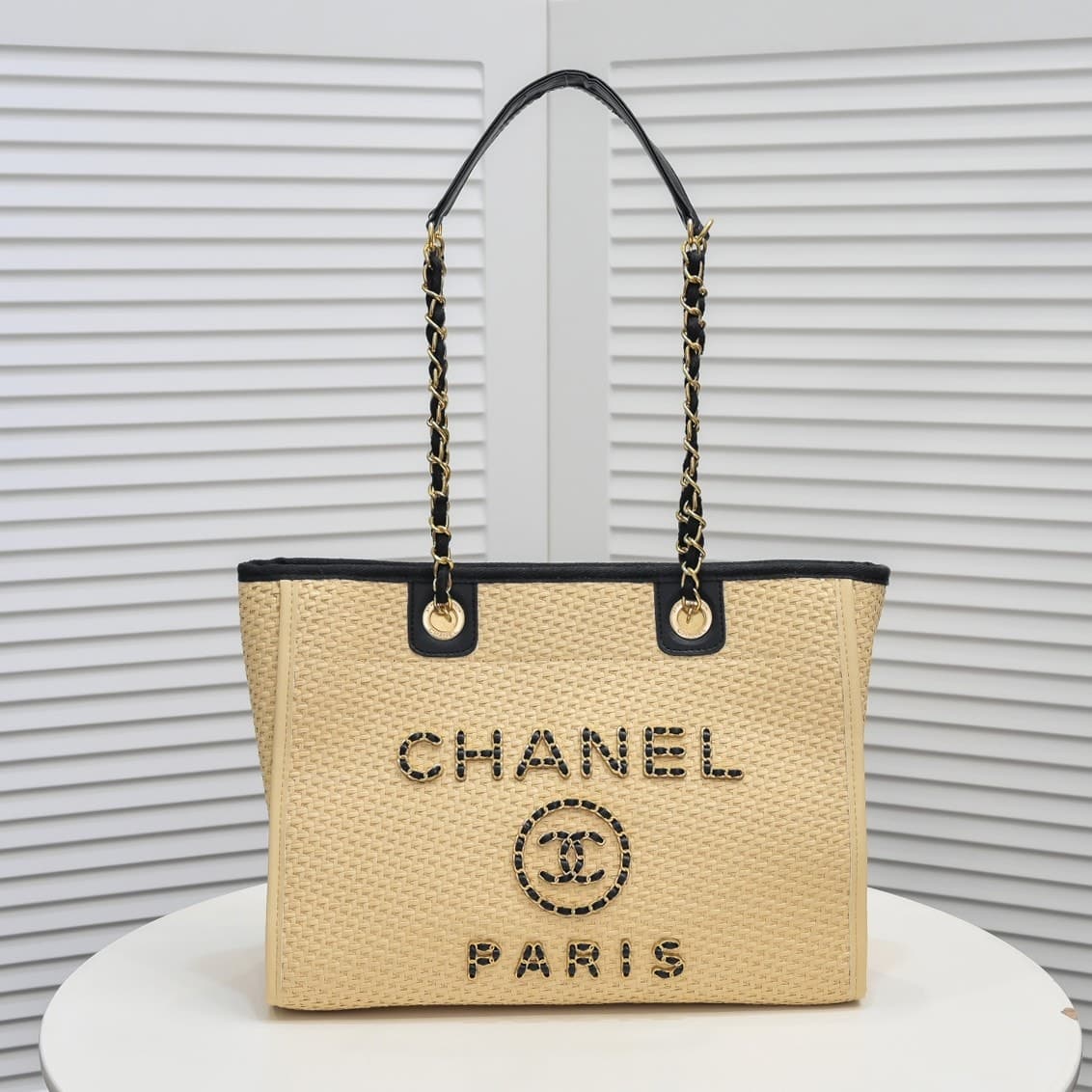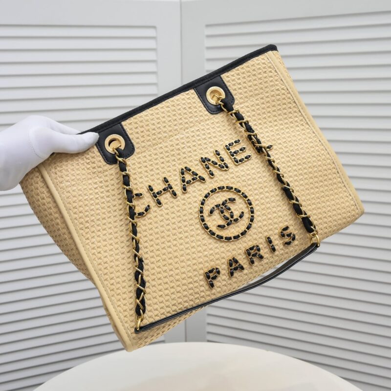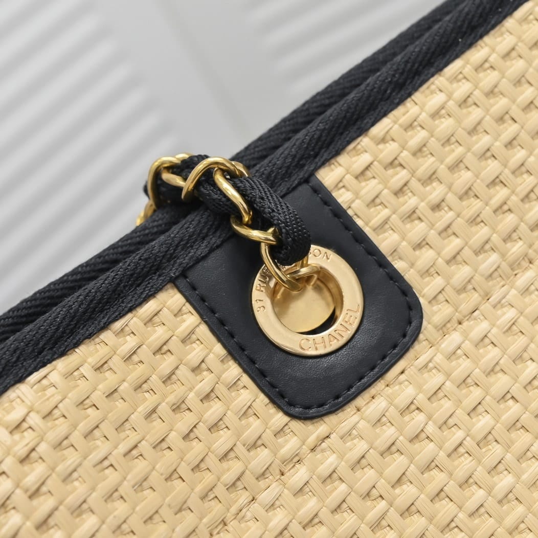 Chanel Deauville Tote Straw With Chain Detail / 39Cm