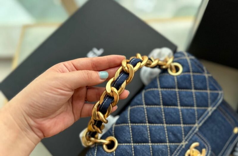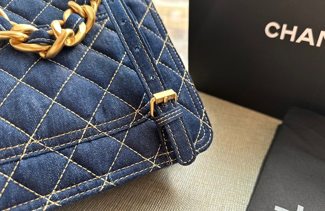 Chanel Double Flap Shoulder Bag / Denim 22cm