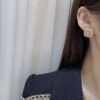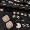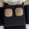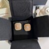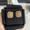 Gold-tone metal CC earrings from 2020 Fall/Winter Act 2 Collection. Square shape set with silver strass. Shiny pink insert with engraved CC logo. Gold-tone metal clip clasps with rubber reinforcement and engraved branding.