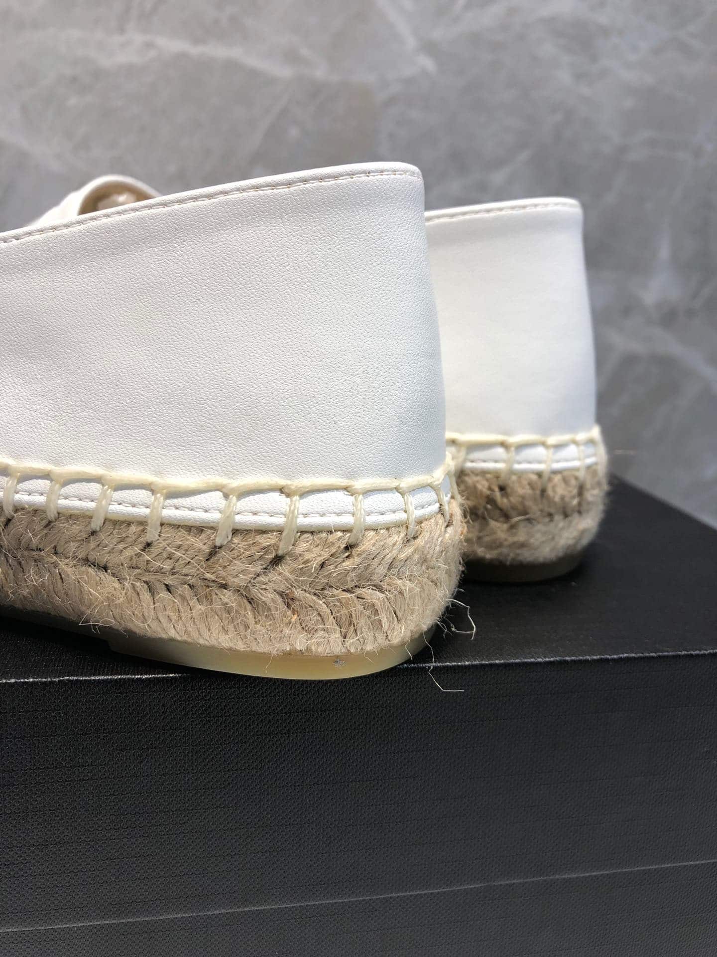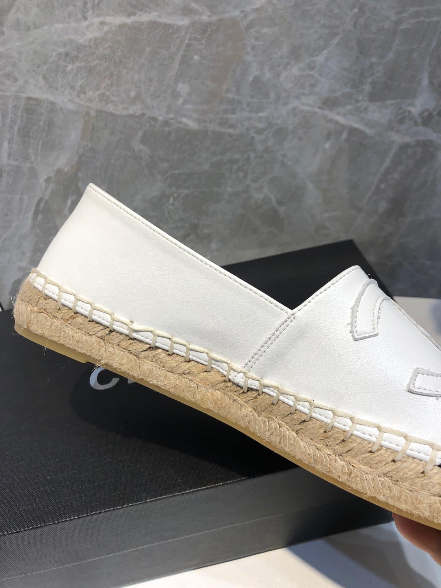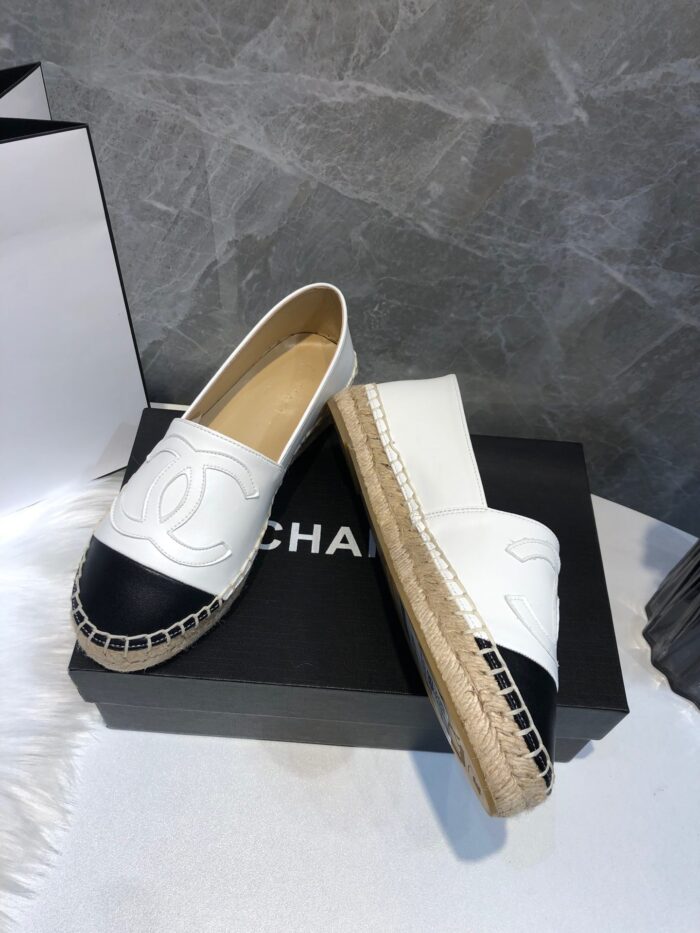 CHANEL EMBROIDERED ESPADRILLE LEATHER BLACK CAP TOE FLATS WHITE CC