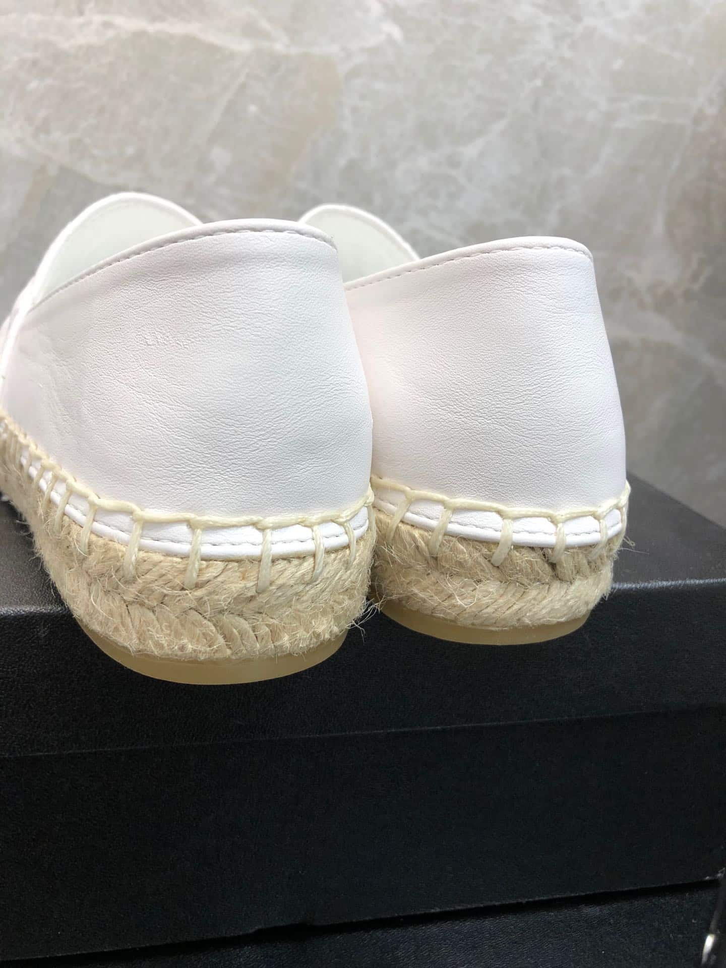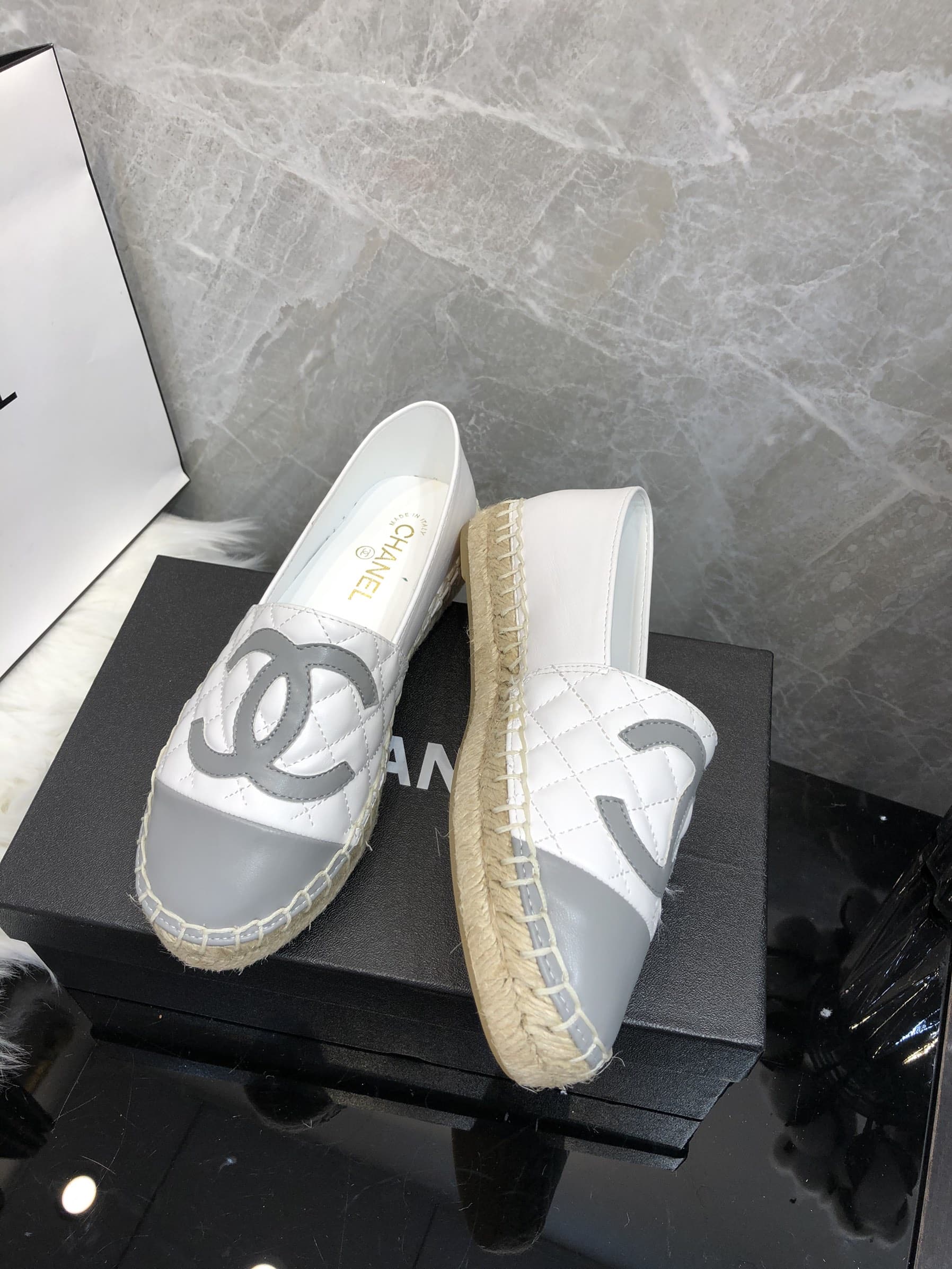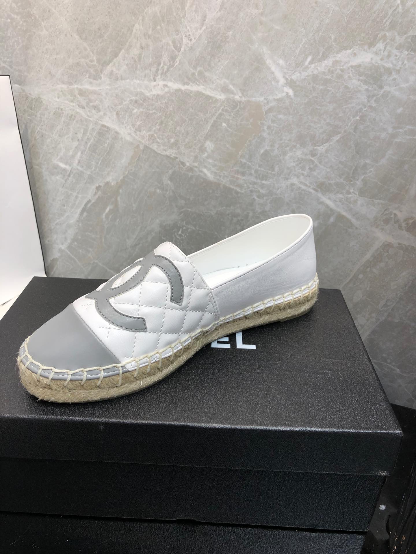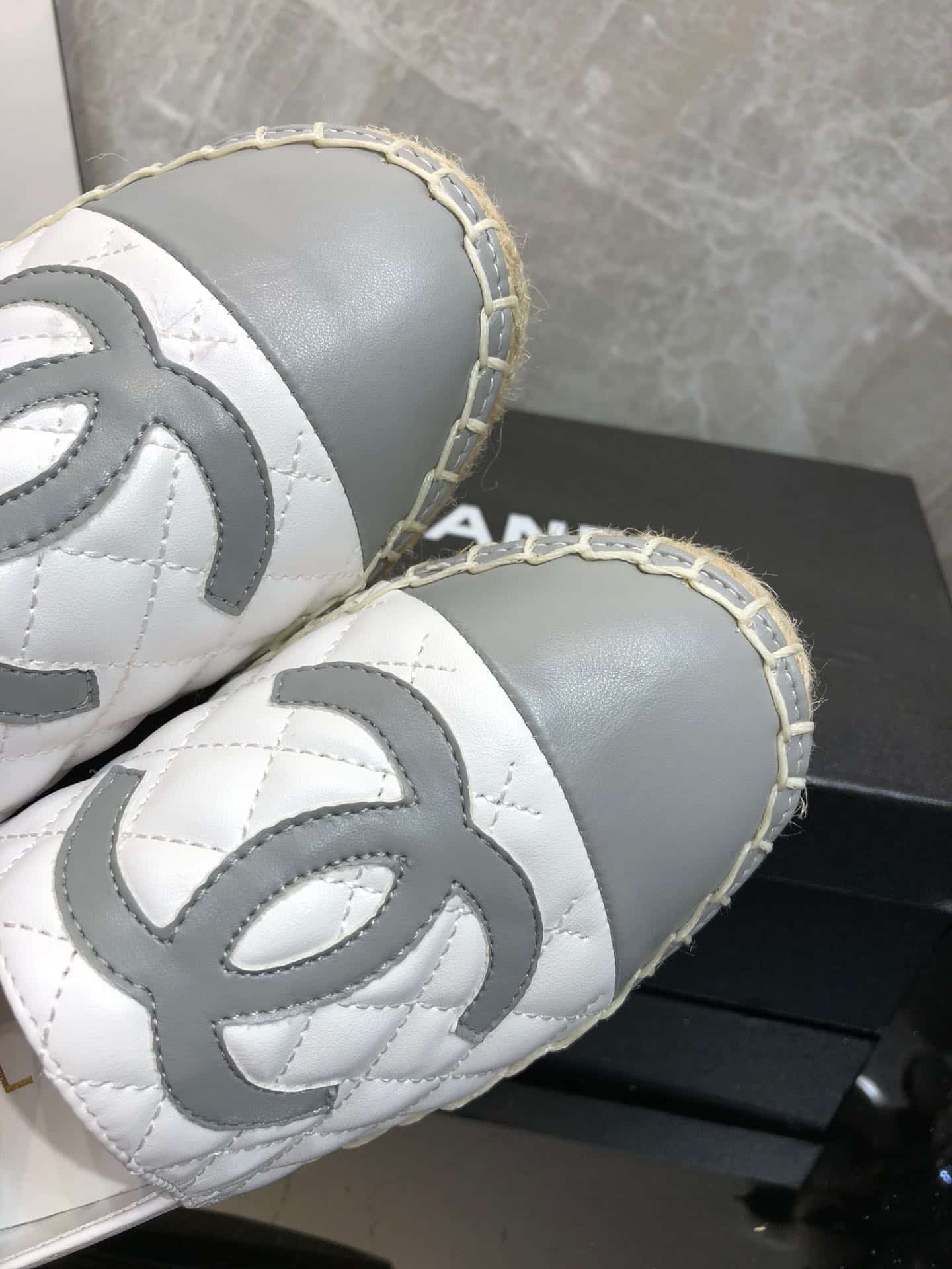 CHANEL EMBROIDERED ESPADRILLE LEATHER GREY CAP TOE FLATS WHITE