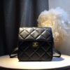 Chanel Large Flap Bag With Top Handle Shiny And Gold Tone Metal Brown Black 29Cm AS5637 B20827 U1536