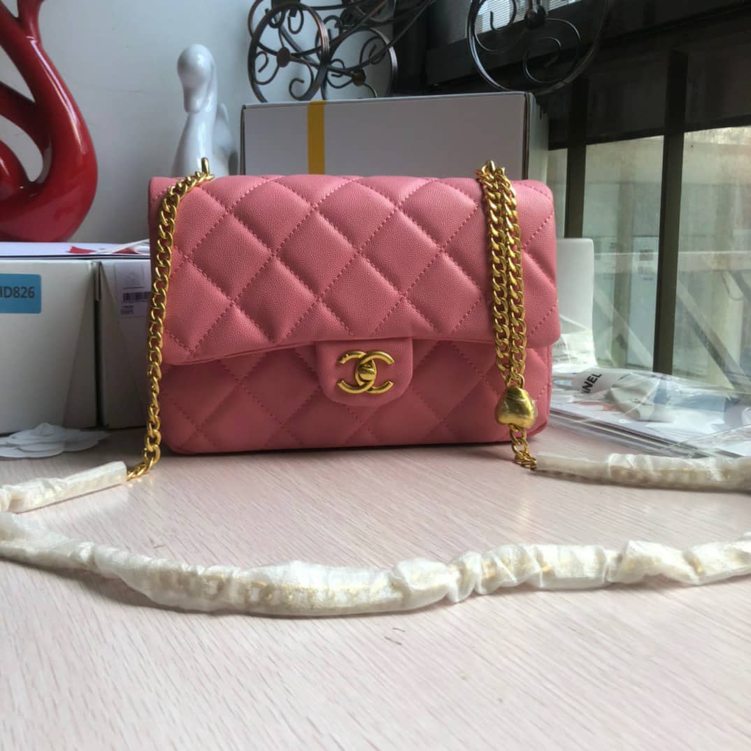 Chanel //Flap Bag With Heart Charm //Pink //24cm