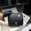 Chanel Grained Shiny And Gold Tone Metal Backpack Black / 8.7 × 7.9 inches / Gold-tone hardware / Fit Daily Essentials / Daily Bags
