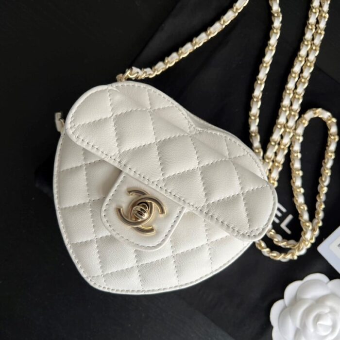 CHANEL HEART CLUTCH WITH CHAIN WHITE AP2784