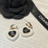 Chanel Heart Logo Dangle Earrings White / Gold metal / Fit Daily Essentials / Chic Jewelry