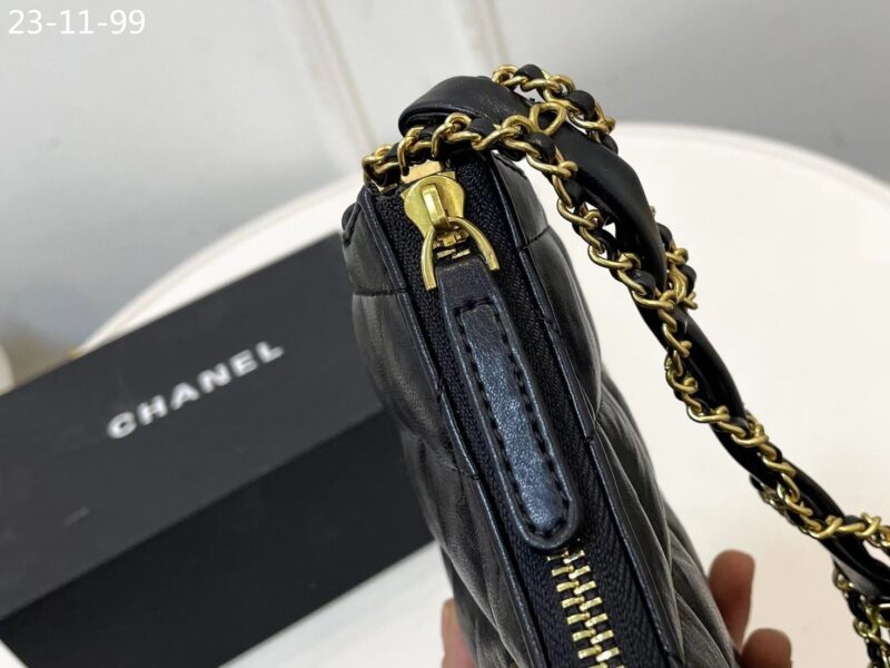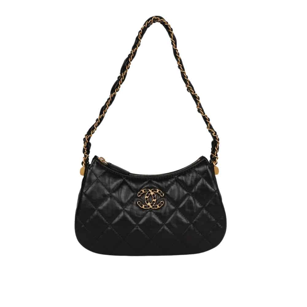 CHANEL HOBO HANDBAG AGED CALFSKIN BLACK 24CM