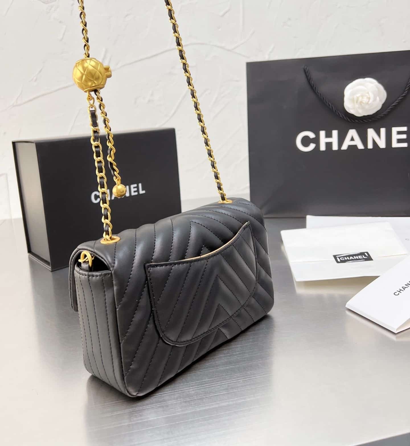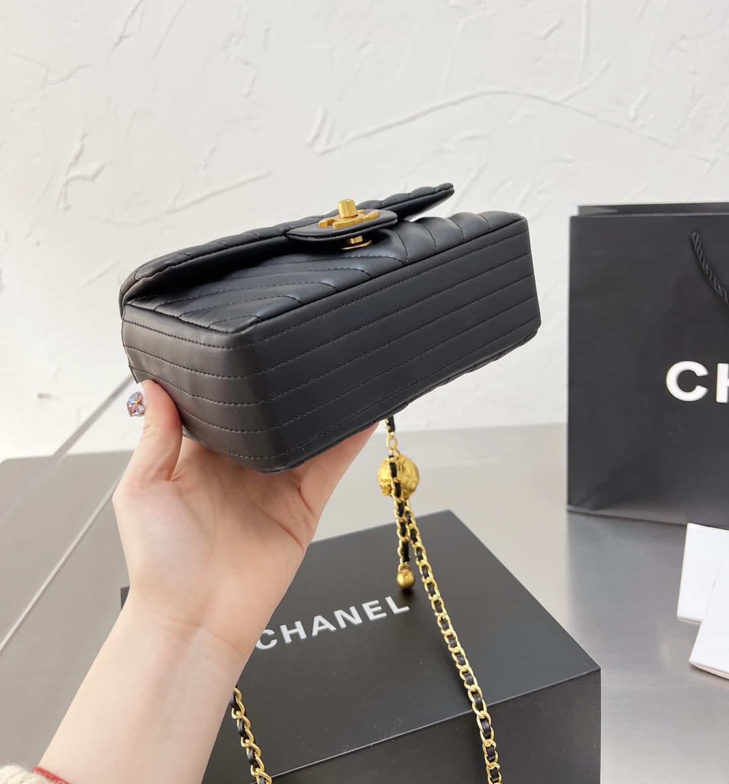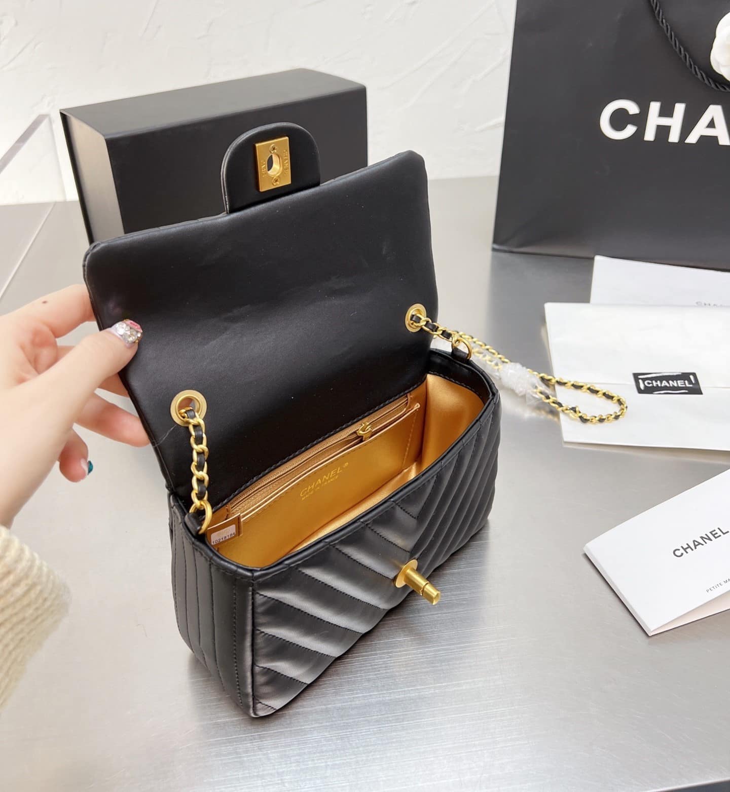 Chanel //Chevron Quilted Mini Rectangular Flap //Black //19cm