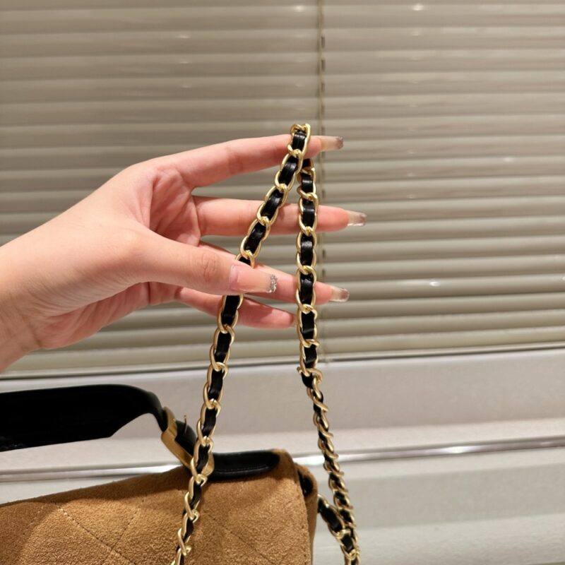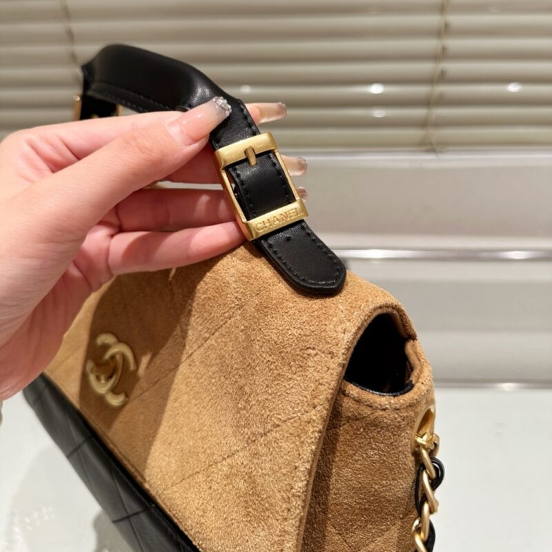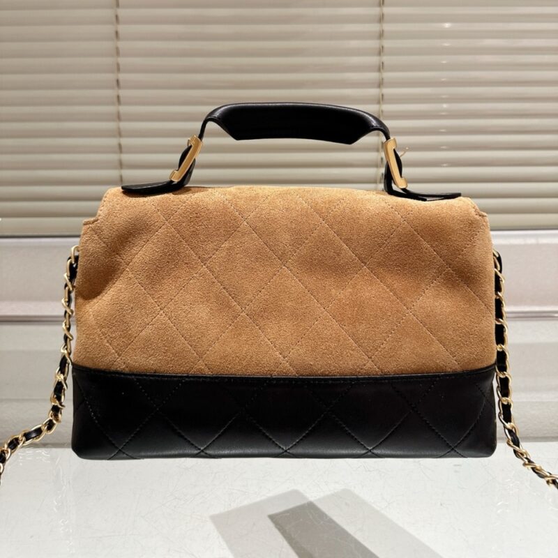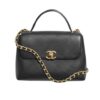 Chanel Large Flap Bag With Top Handle Shiny & Gold-Tone Metal Beige & Black AS5637 B20827 U1536 / 29 cm / 11.4 inches