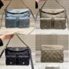- Fabric with brushed gold hardware featuring signature diamond quilt