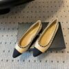 Chanel Leather And Fabric Cc Chain Link Ballet Flats Beige And Black