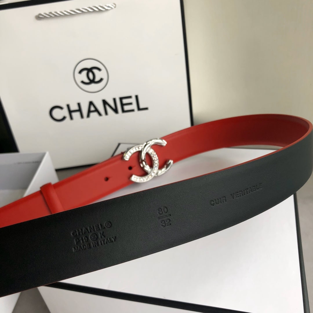 CHANEL LEATHER BELT WITH CC PEARL AND SILVER TONE METAL RED 3CM