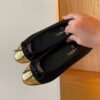 1:1 Replica Shoes – Chanel Leather Cap Toe Ballet Flats Black Gold