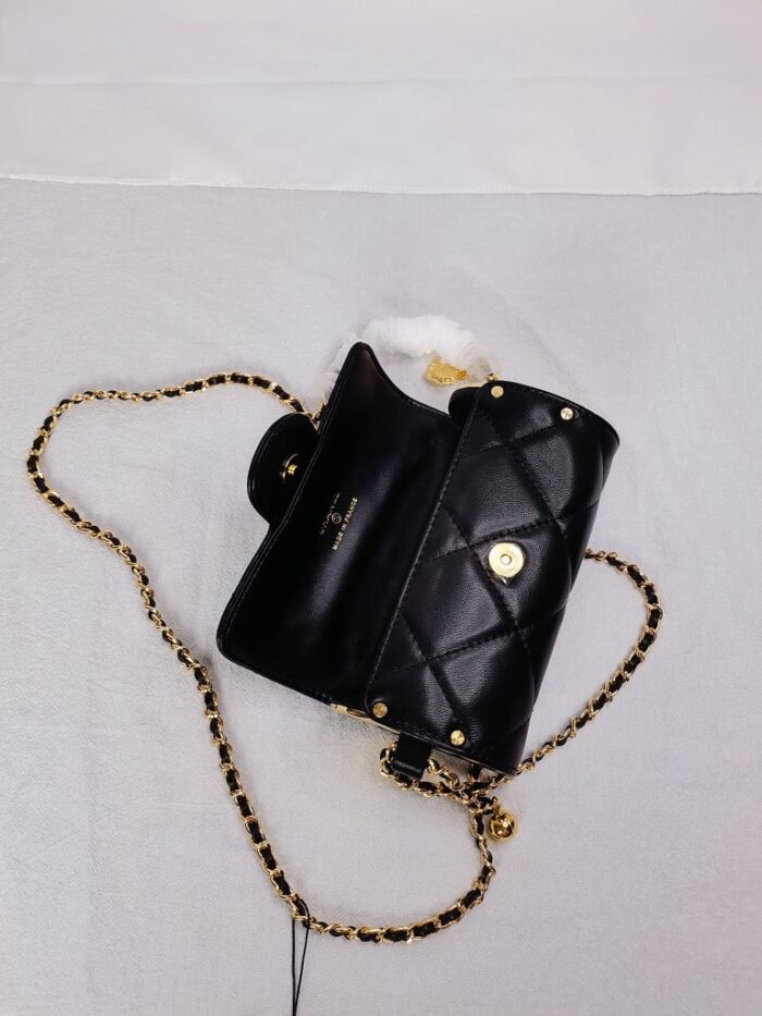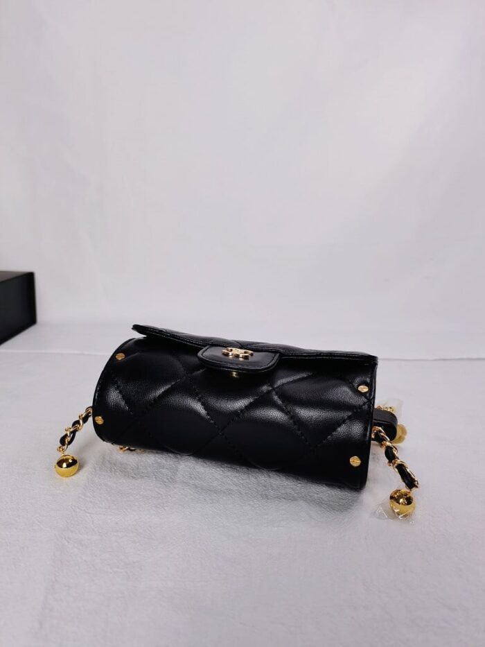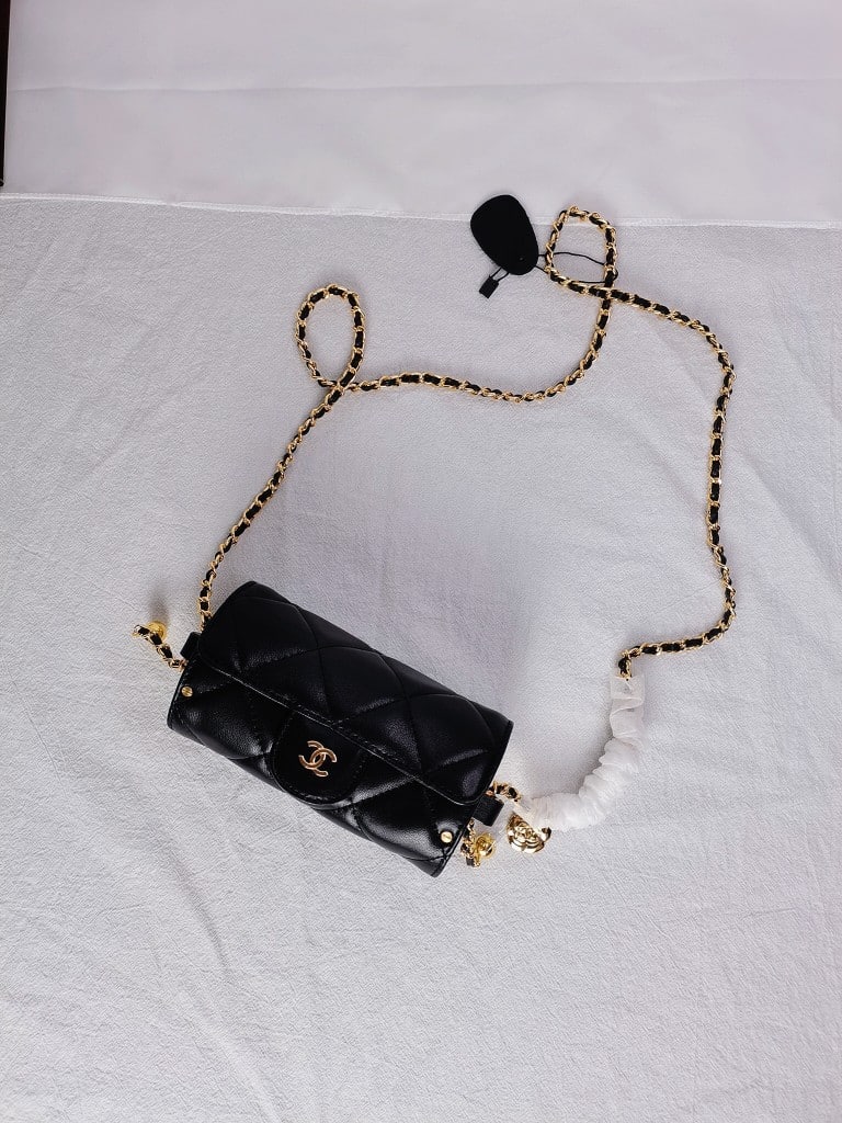 Chanel//Lipstick Bag With Chain Ghw//Black//15cm